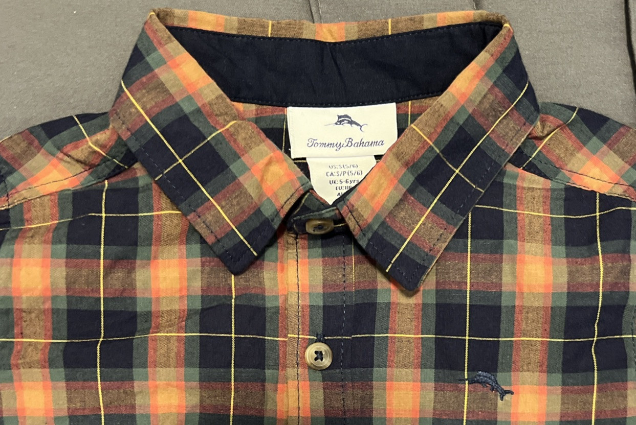как выглядит TOMMY BAHAMA Kids Shirt Boys Size 5/6 Button Up Plaid Blue Long Sleeve фото