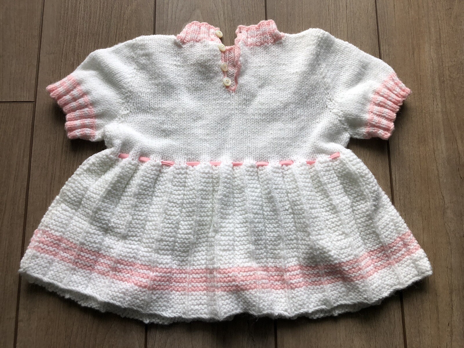 как выглядит Vintage Handmade Hand Knit Sweater Dress Baby Pleats White Pink SZ 1 фото