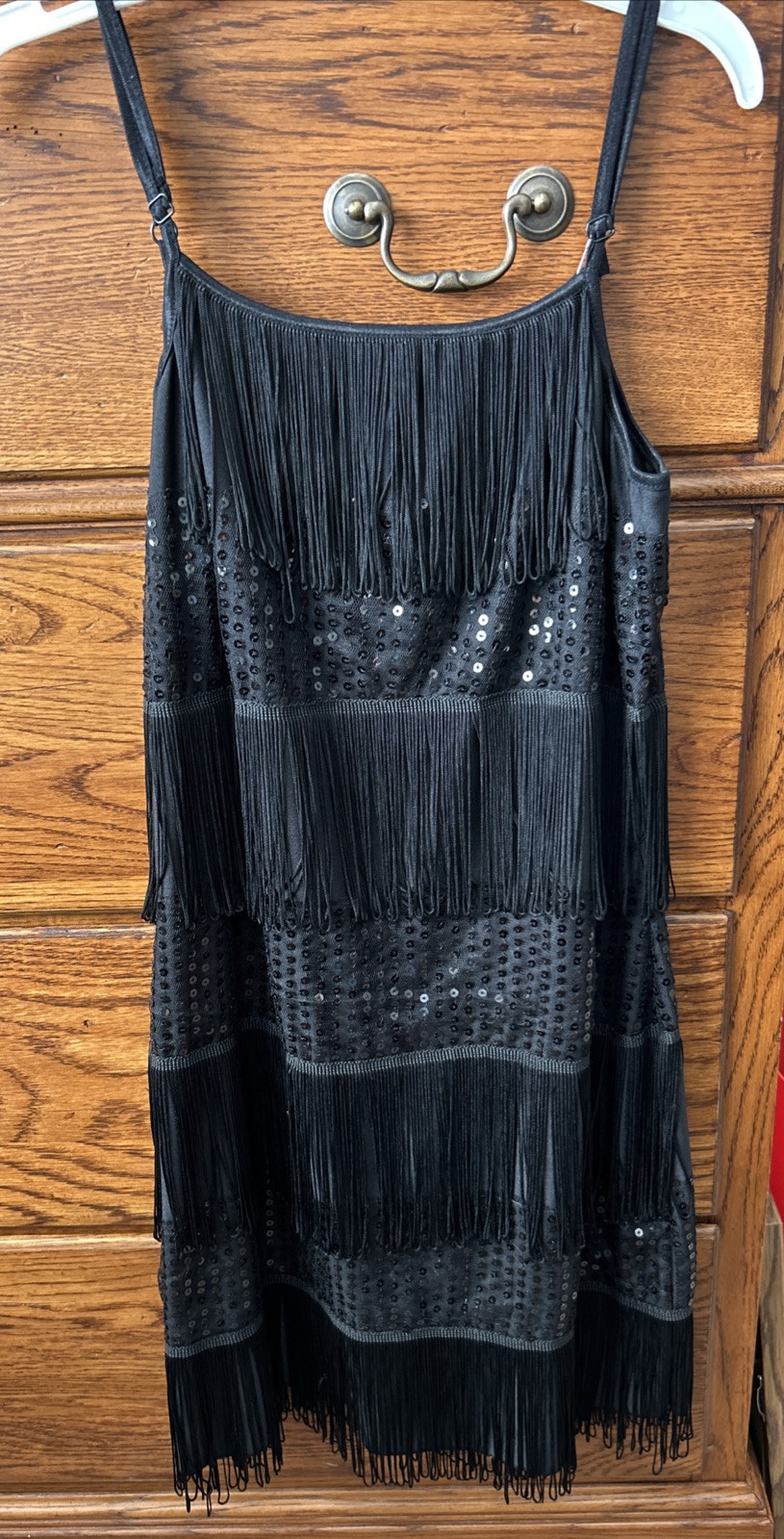 Girls Black Flapper Dress Fringe Sequin Shorts Headband Sz MA Dance Recital