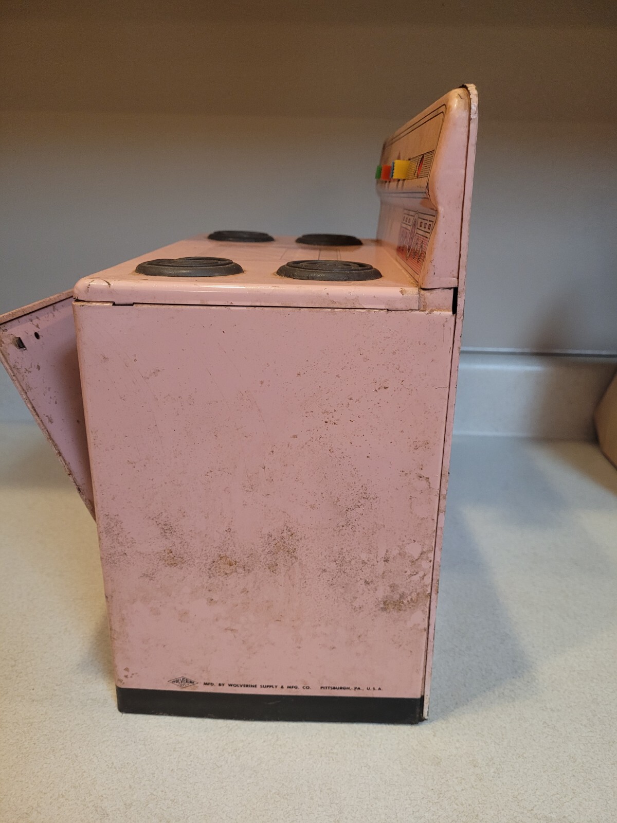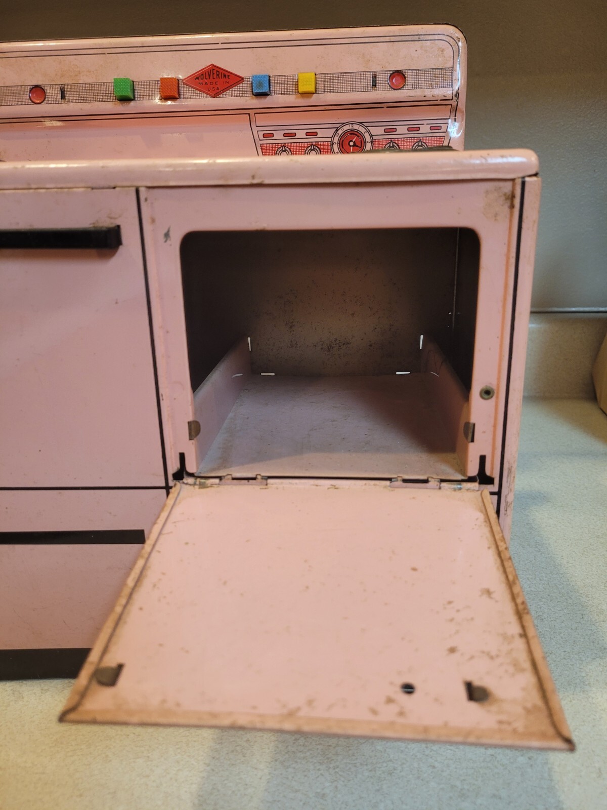 Vintage Wolverine Pink Tin Metal Toy Litho Stove Oven 1950s