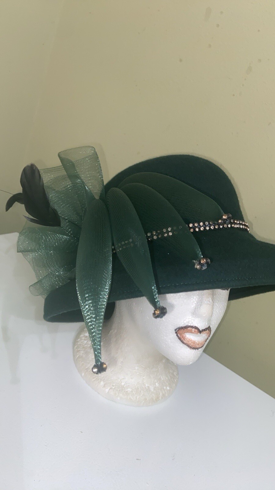 Beautiful Dark Emerald Wool Dress/Church Hat