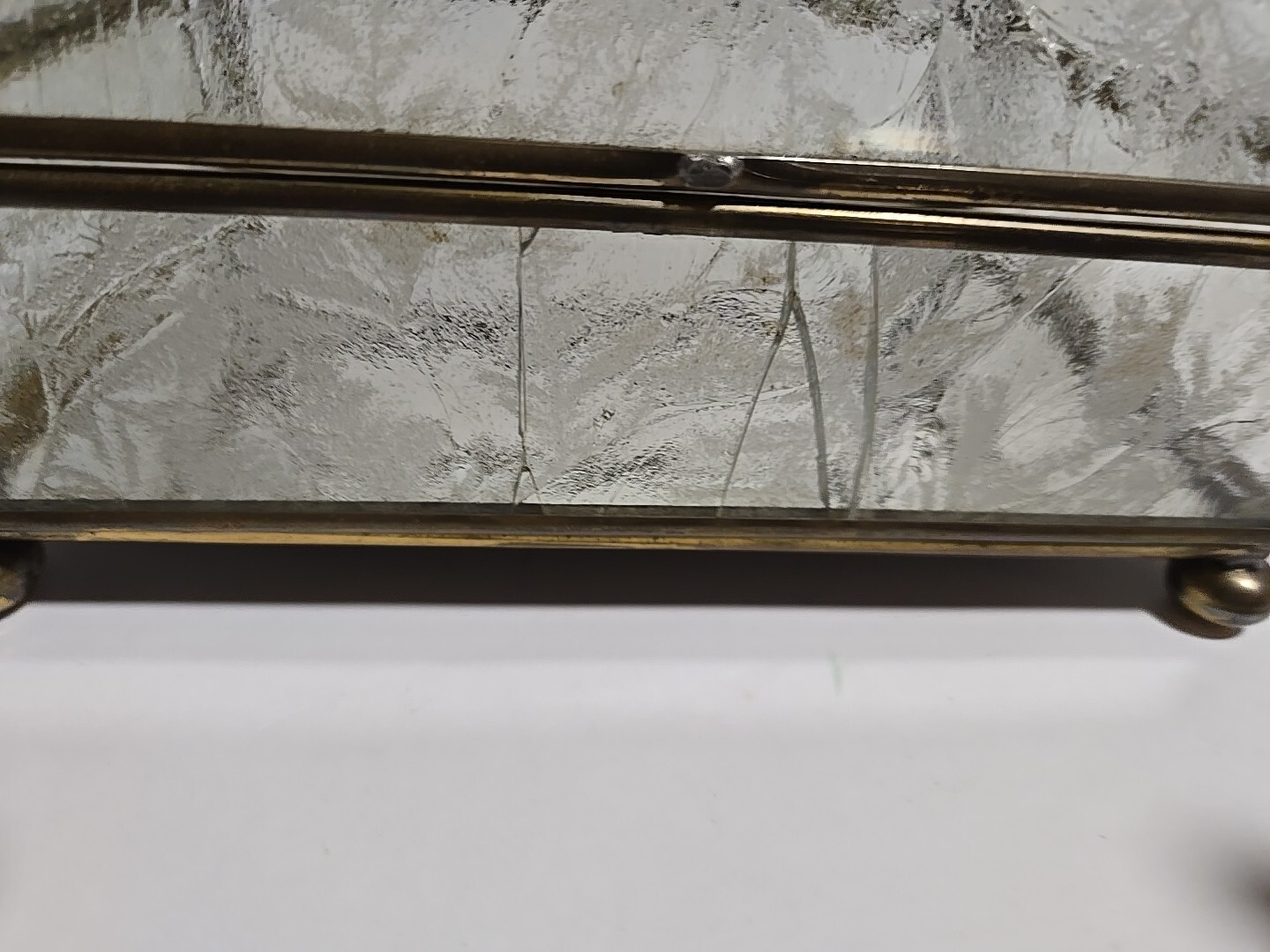 как выглядит Etched Brass/ Glass Trinket Box Footed Beveled Glass Hinged Lid 6x3.5" фото