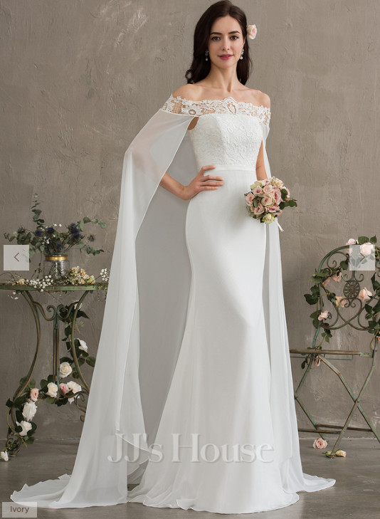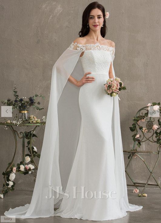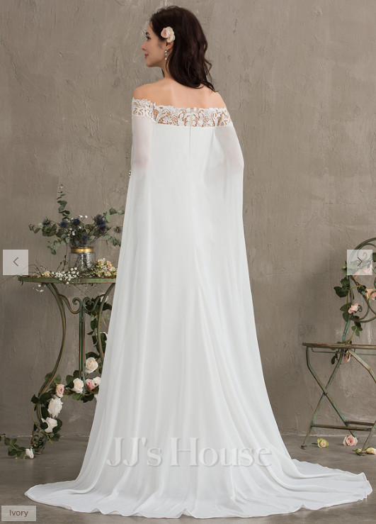 как выглядит Bohemian Chiffon Wedding Dresses with Cape Lace Appliques A Line Bridal Gowns фото