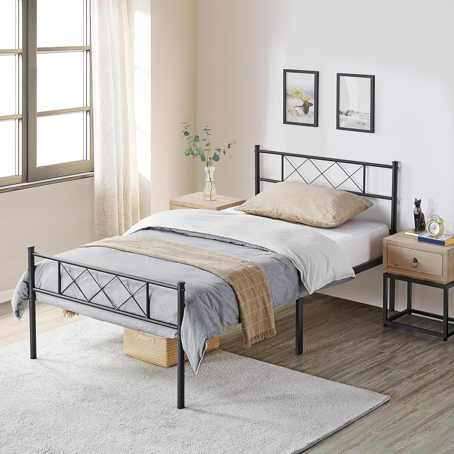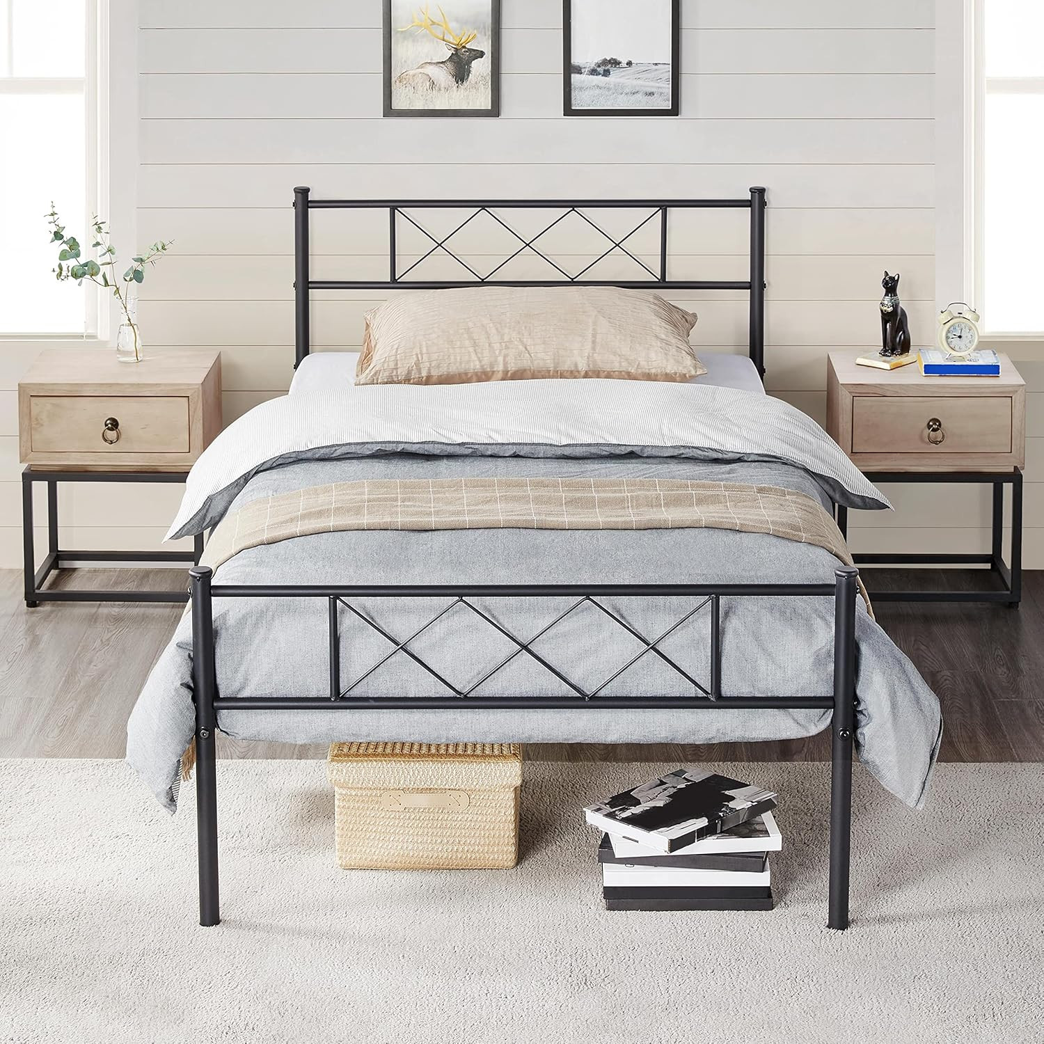 Twin 13 Inch Black Industrial Platform Metal Bed Frame with Headboard and Footbo