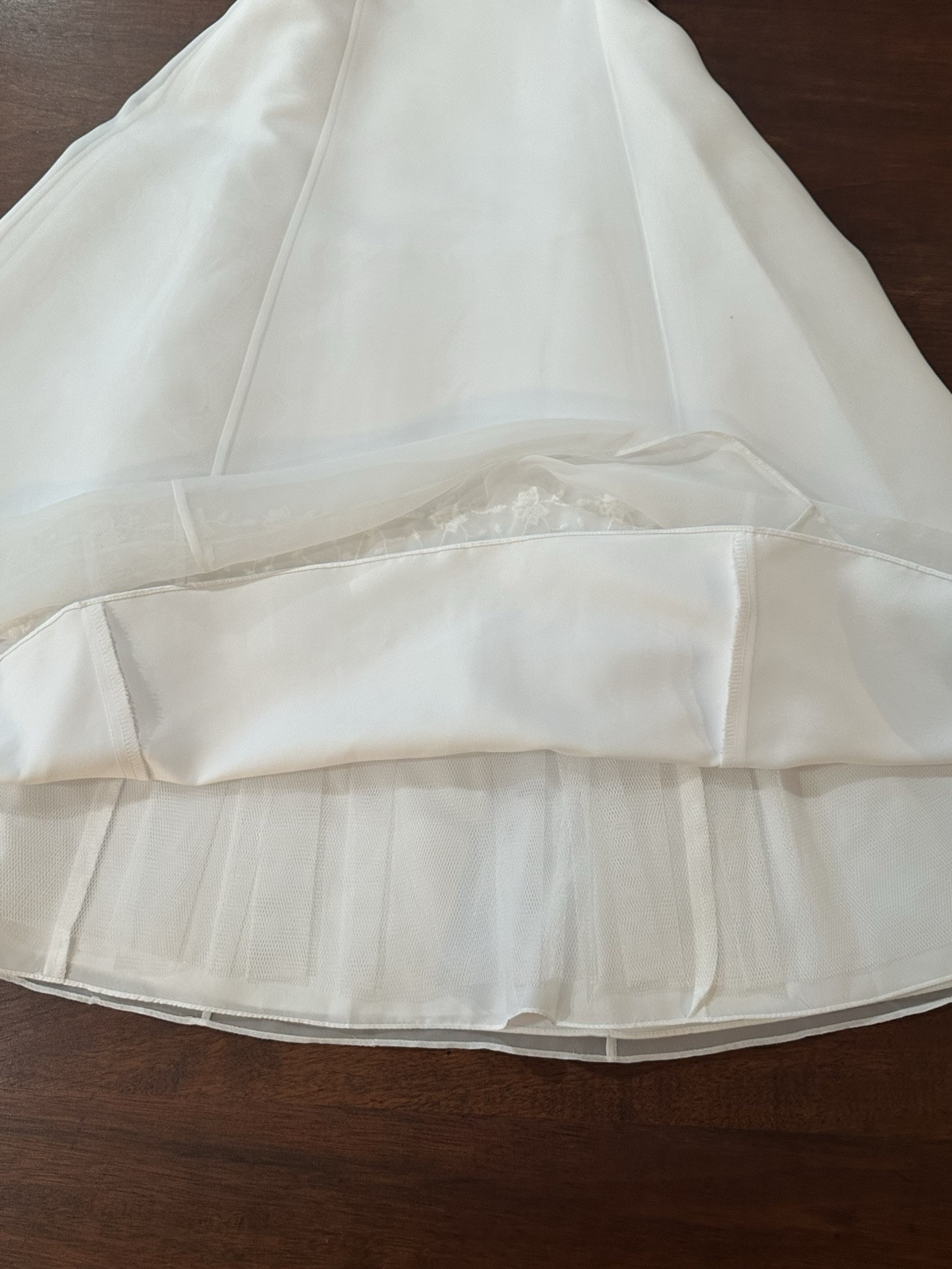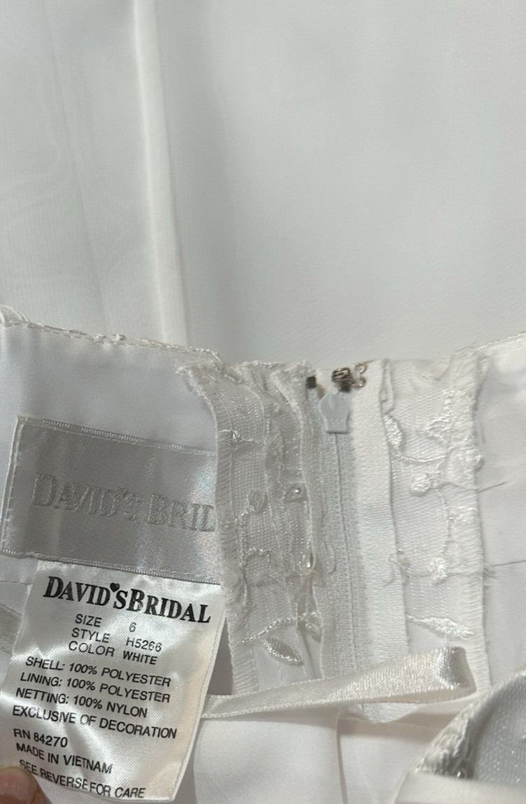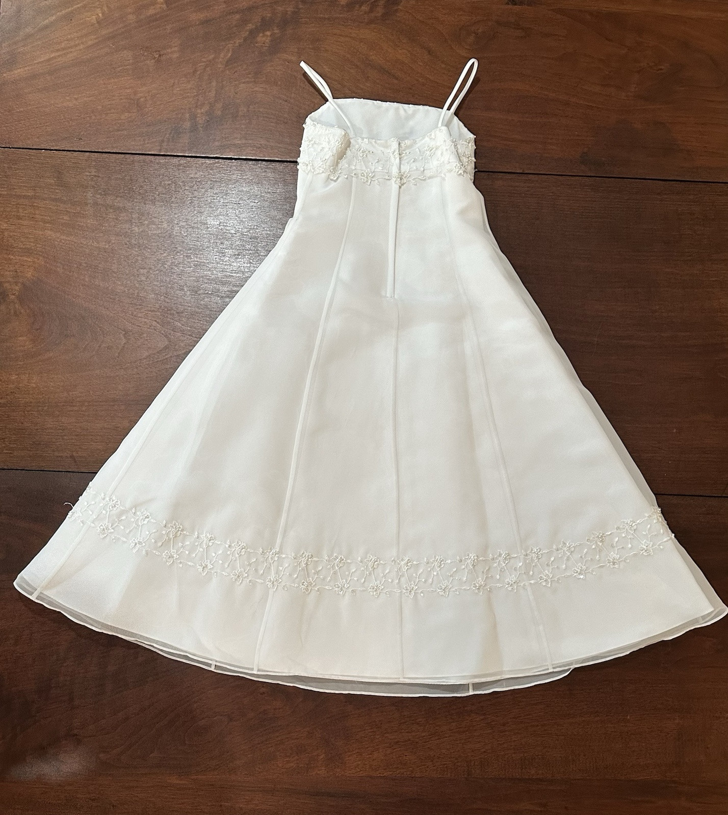 David's Bridal Wedding Flower Girl Dress Size 6 White H5266 Pearls Embroidery