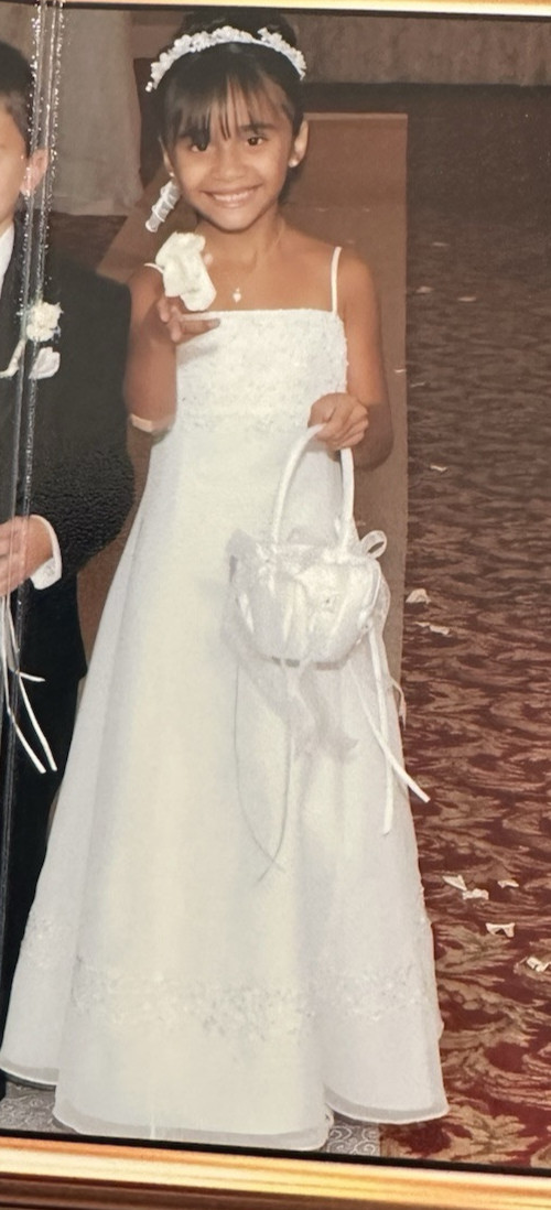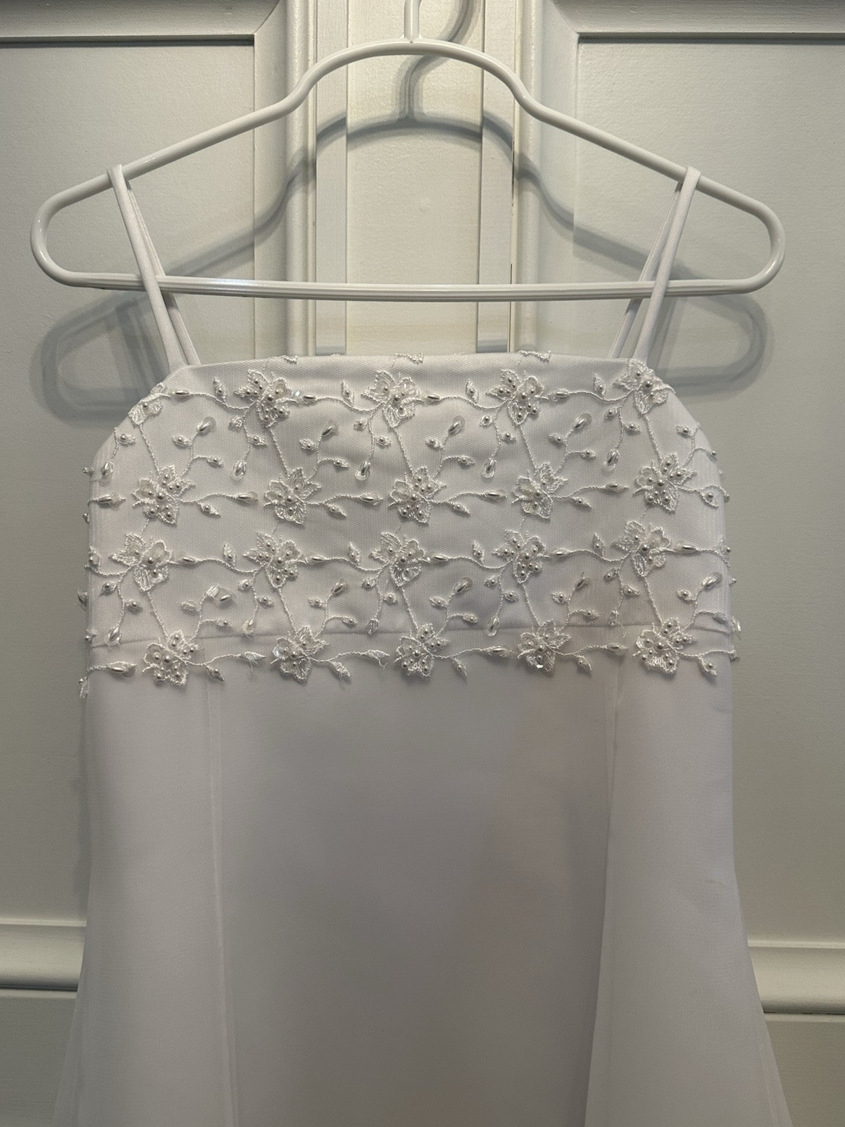 как выглядит Davids Bridal Wedding Flower Girl Dress Size 6 White H5266 Pearls Embroidery фото