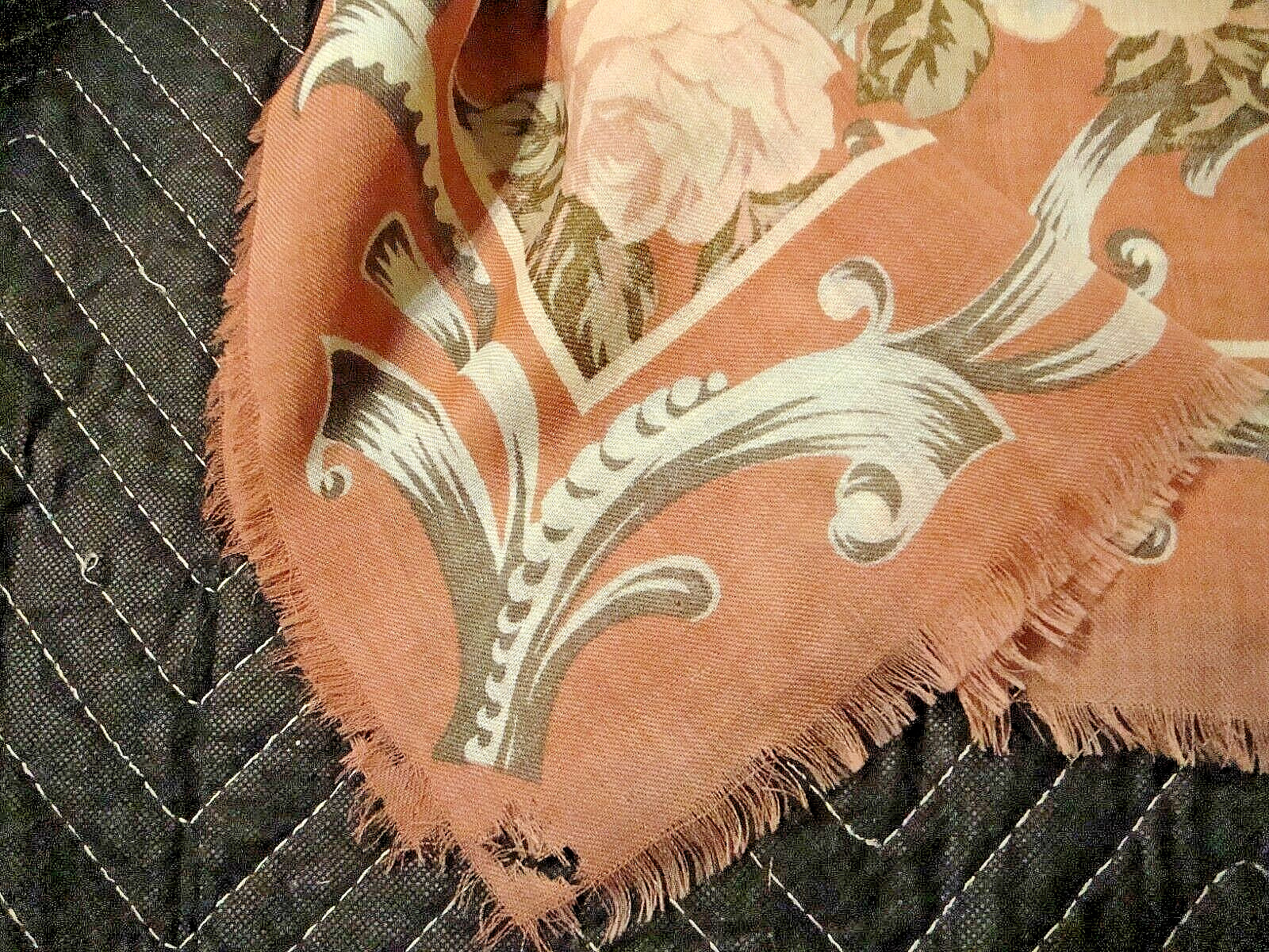 как выглядит Vintage Scarf /Wrap Peach Multi-color w/ Fringed Edges 34" Square defects Y1 фото