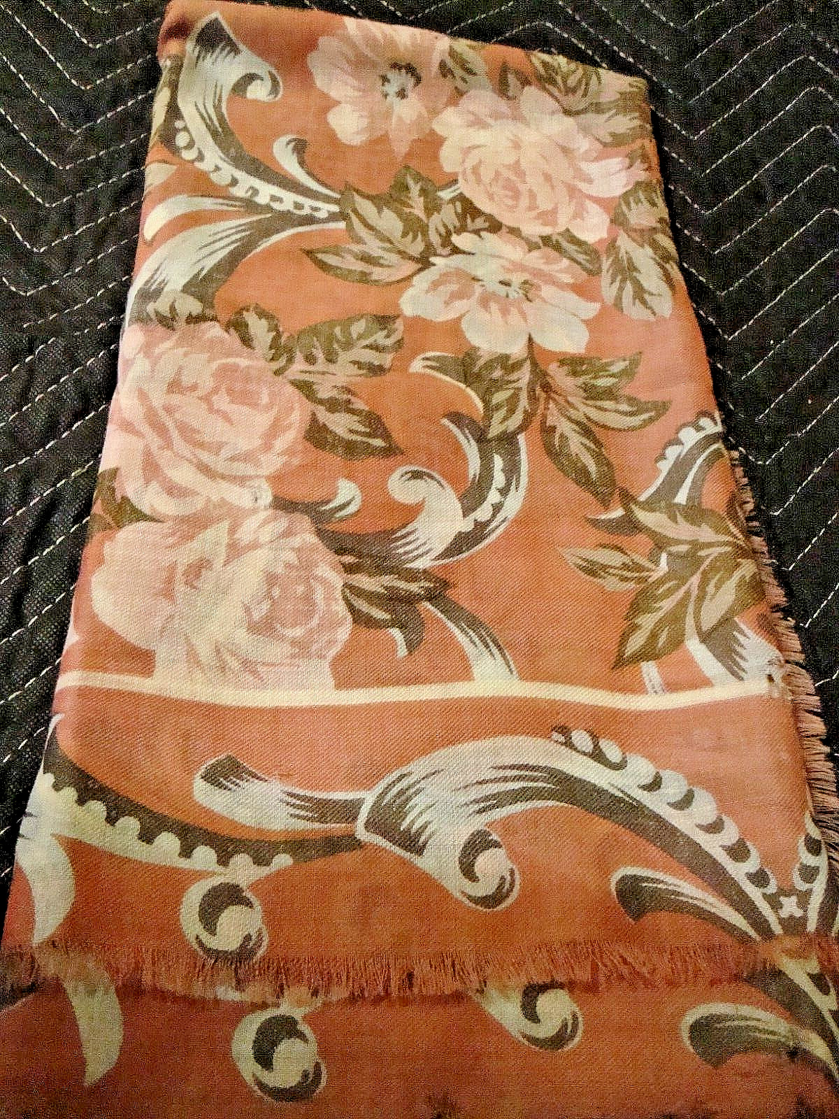 Vintage Scarf /Wrap Peach Multi-color w/ Fringed Edges 34 Square defects Y1