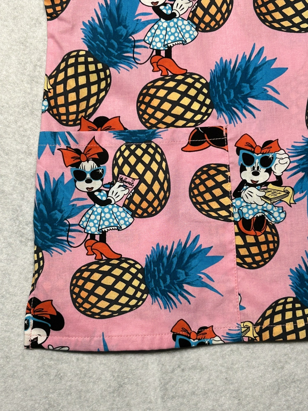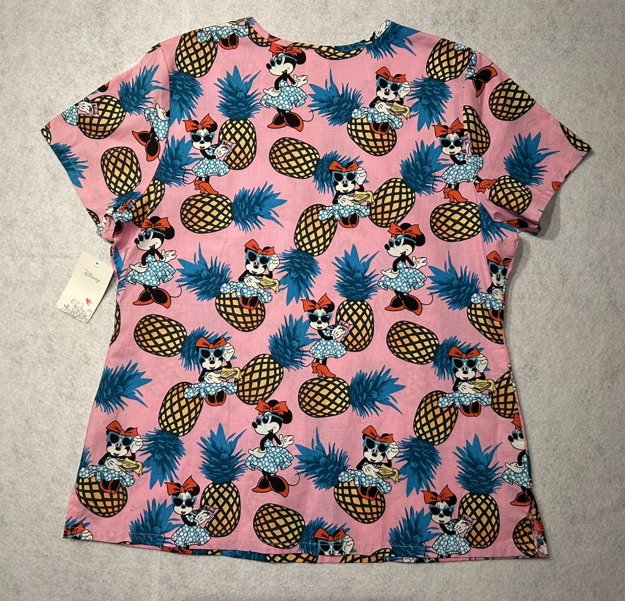 Women's L Disney Scrub Top Pineapple Minnie Pink Short Sleeve Nurse Medical NEW
