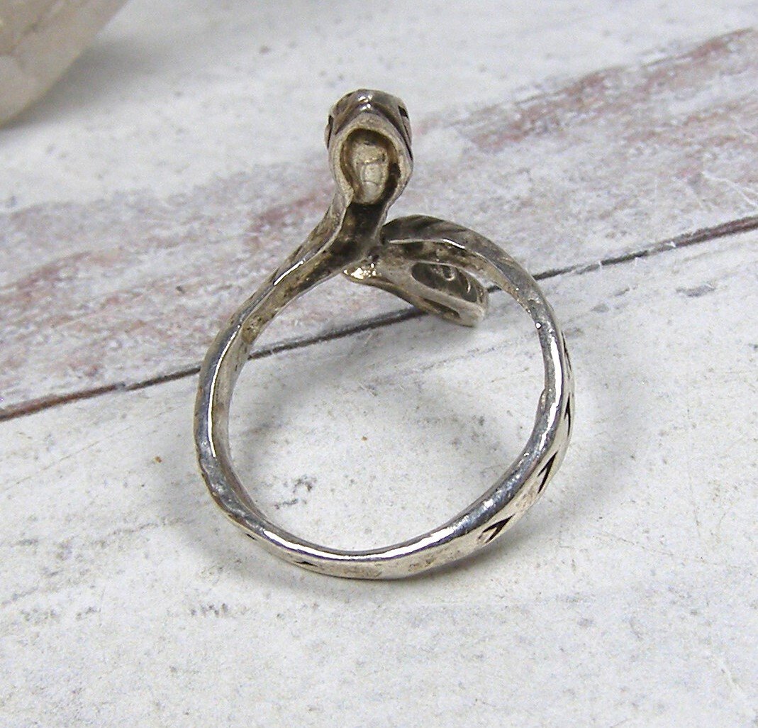 как выглядит Sterling Silver Stamped Textured Reptile Design Snake Ring 6 фото