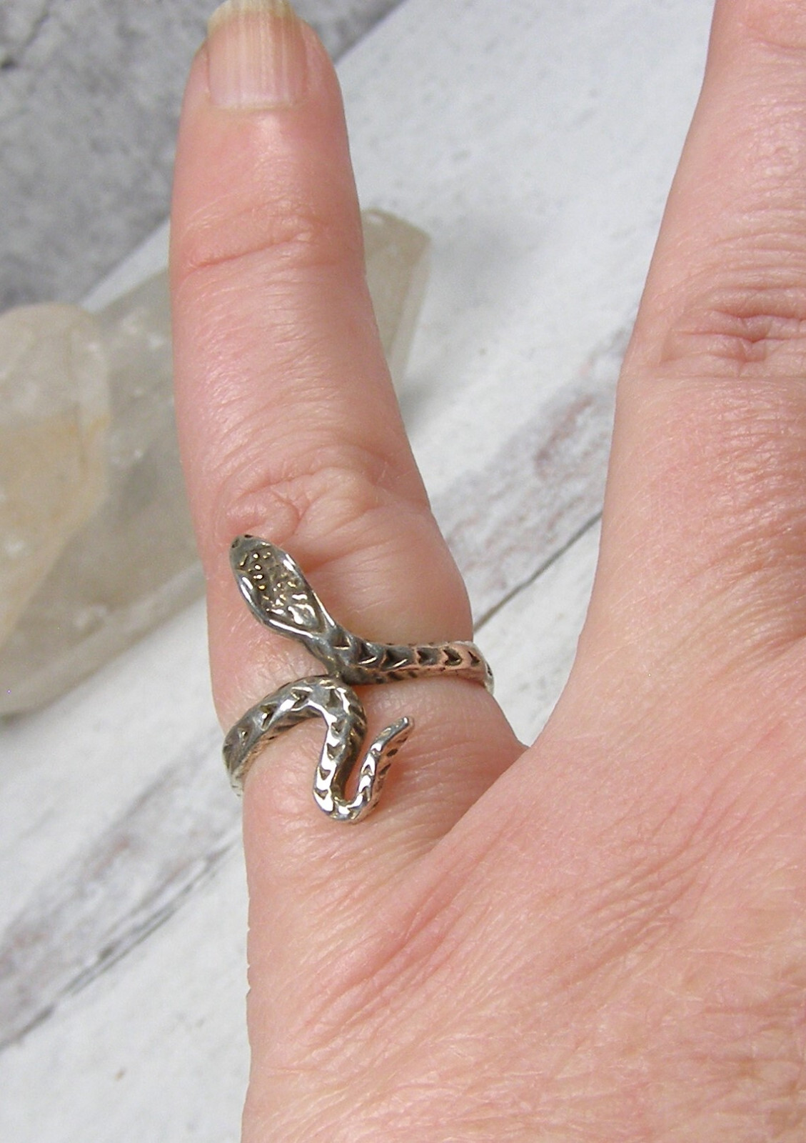 Sterling Silver Stamped Textured Reptile Design Snake Ring 6