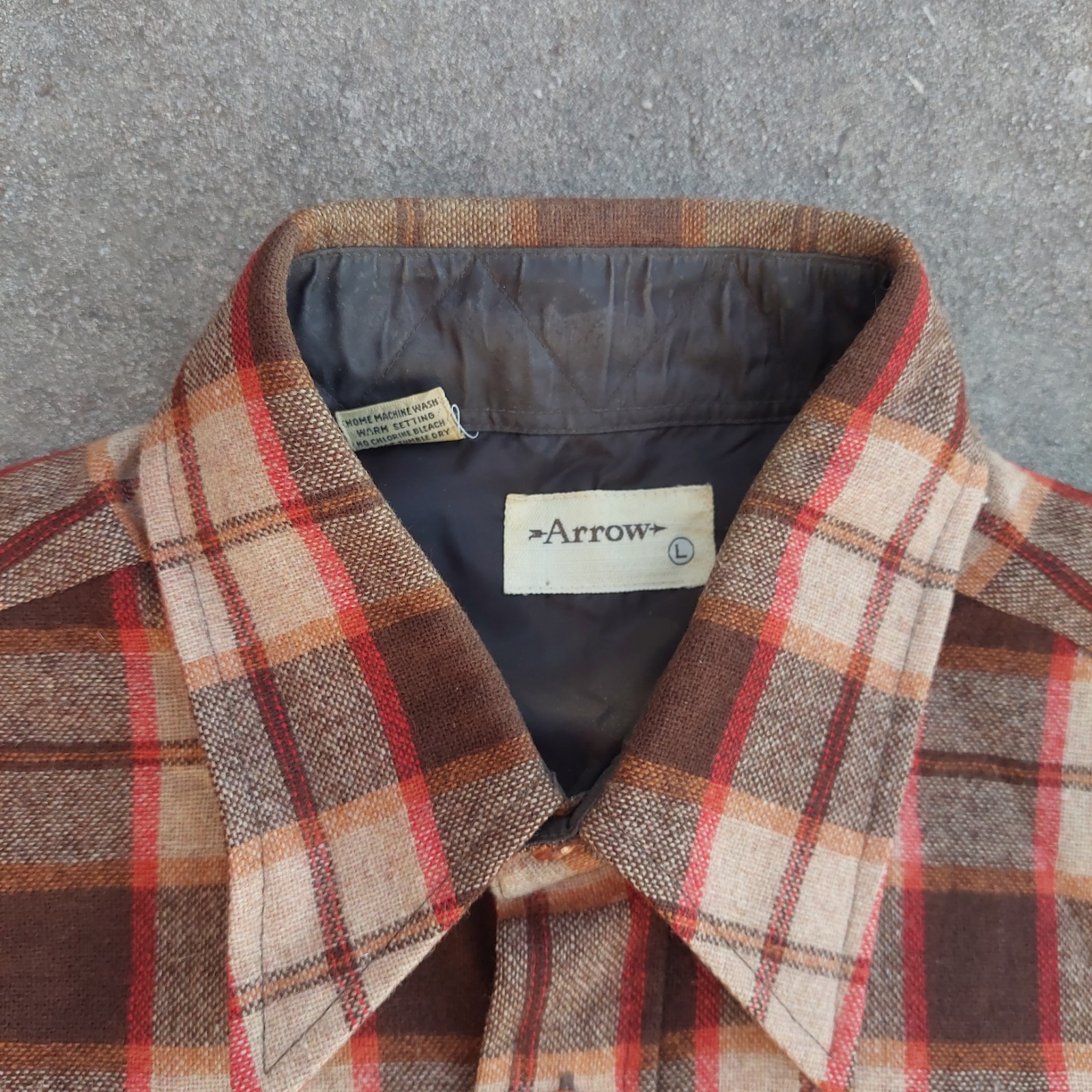 как выглядит Vintage Arrow Flannel Plaid Button Shirt Size Large 70s 80s фото