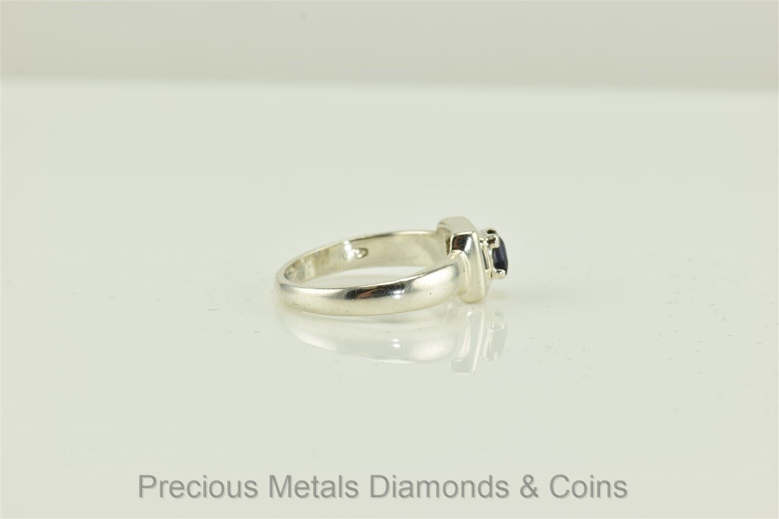 Cute Sterling Silver Princess Cut Amethyst Halo Band Solitaire Ring 925 Sz: 6.5