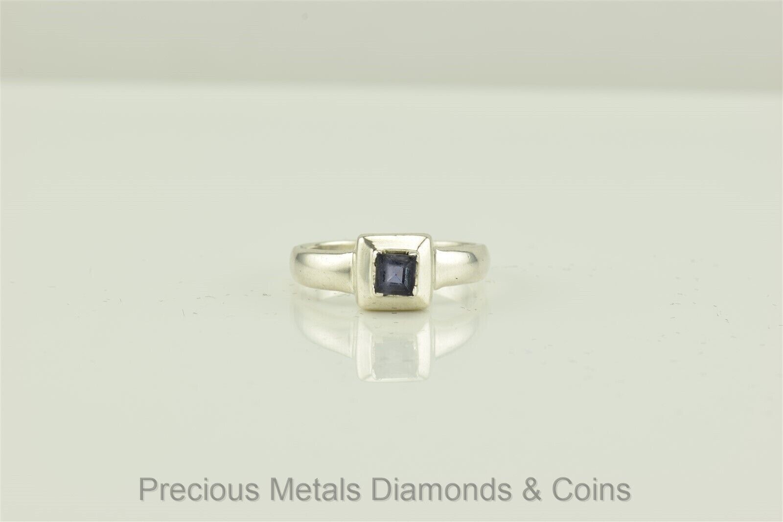 как выглядит Cute Sterling Silver Princess Cut Amethyst Halo Band Solitaire Ring 925 Sz: 6.5 фото