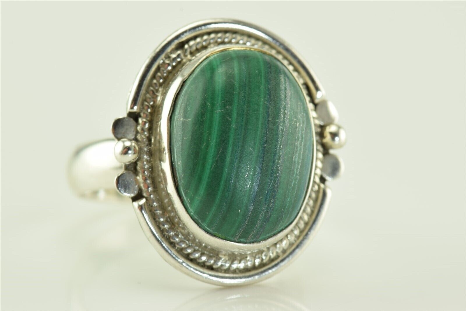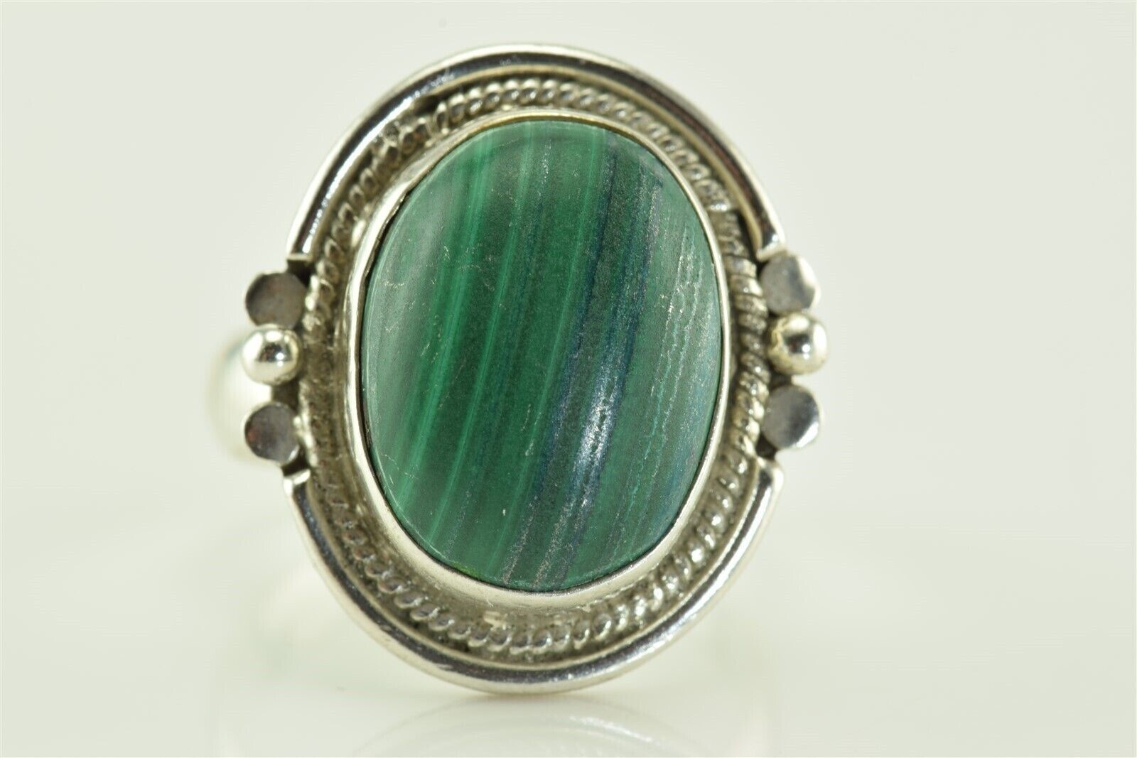 как выглядит Sterling Silver Rope Bezel Set Green Malachite Statement Ring 925 Sz: 8.5 фото
