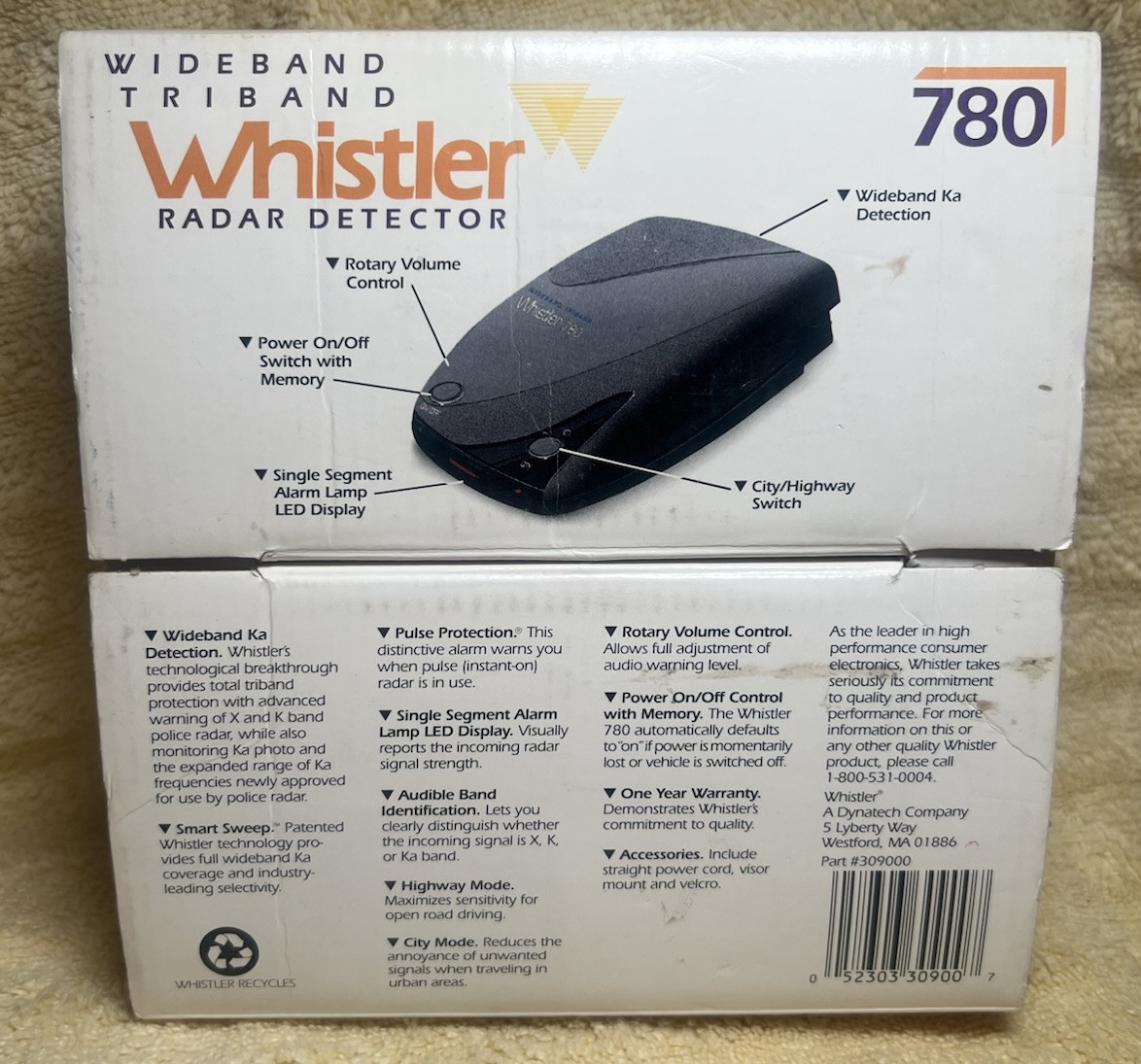 Whistler 780 WideBand Ka TriBand Radar Detector - Complete - Vintage