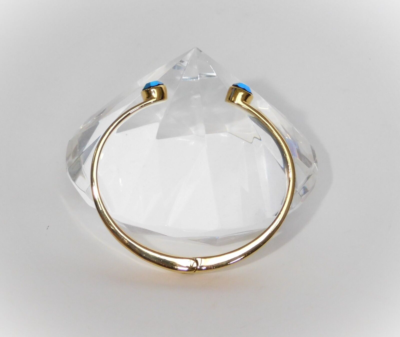 Kate Spade New York Gold Plated Open Cuff Bracelet 2 Faceted Blue AB Crystals