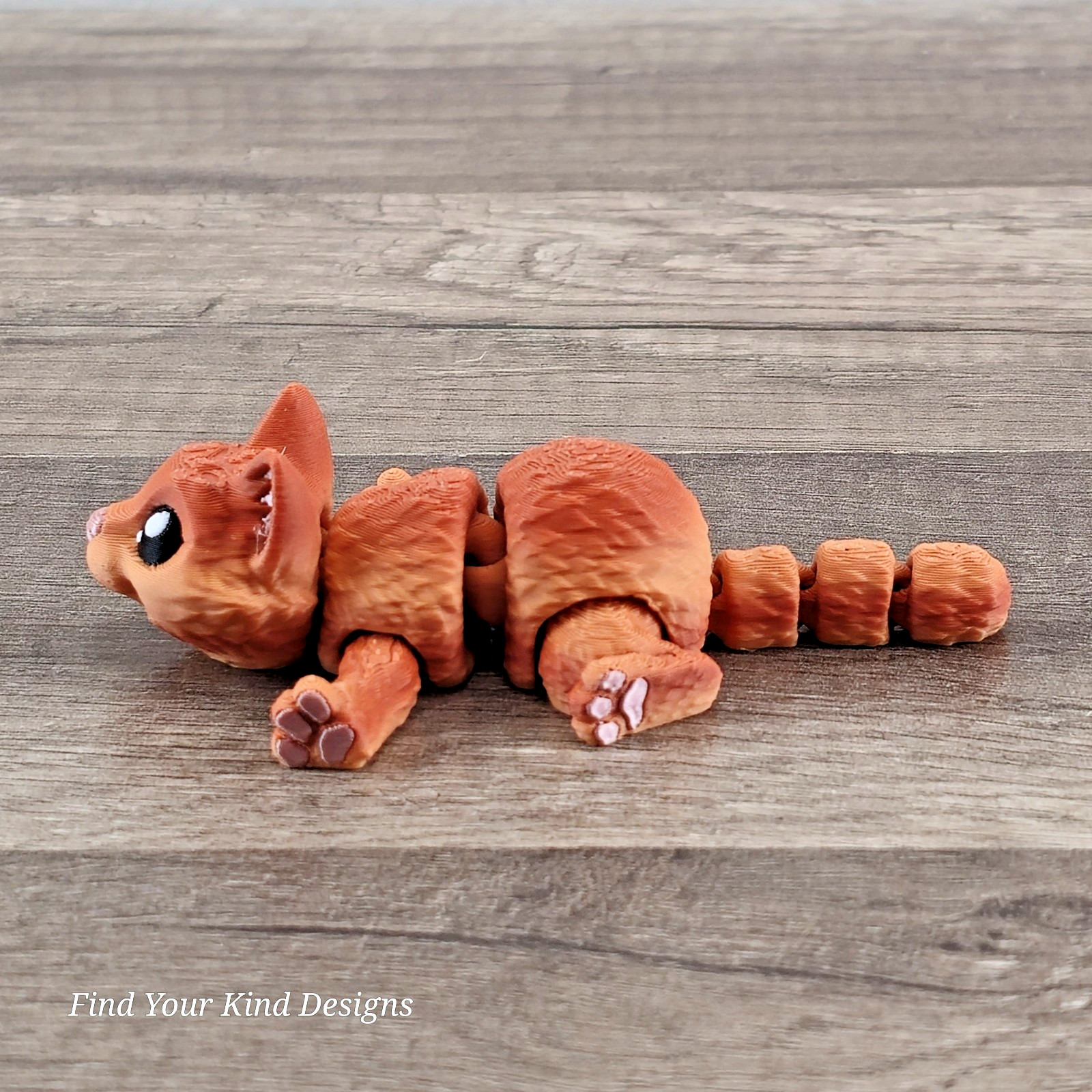 Mini Cat 3D printed articulated toy 4 inch Flexi Fidget gift orange color PLA