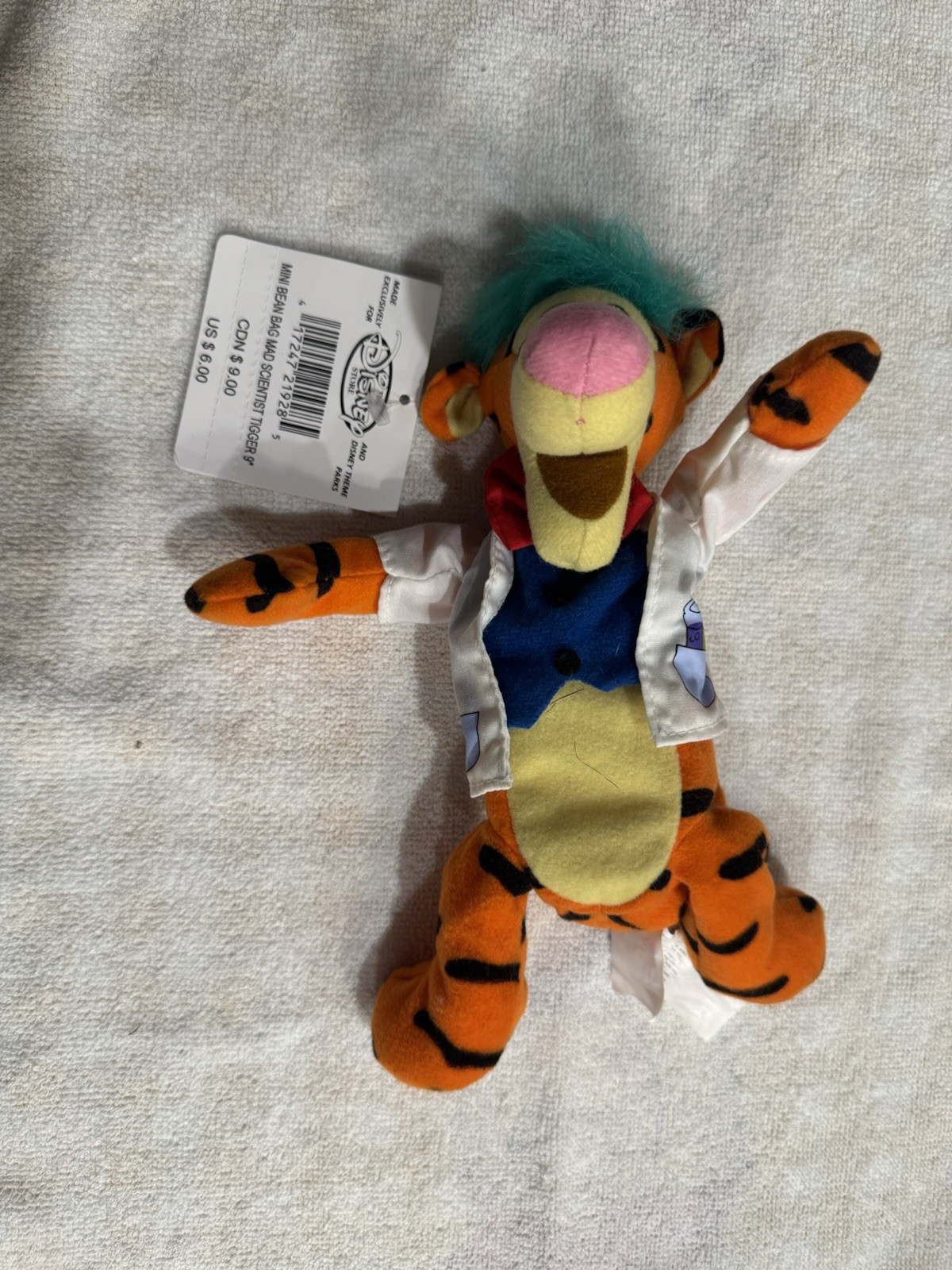 Disney Store Tigger 9 Mad Scientist Mini Bean Bag WT Plush Stuffed Animal B197