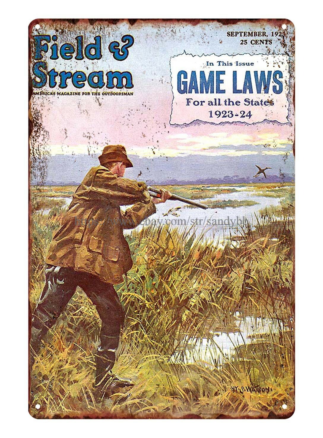 outdoor enthusiasts 1923 American outdoor man duck hunting metal tin sign accent