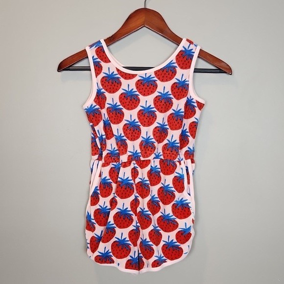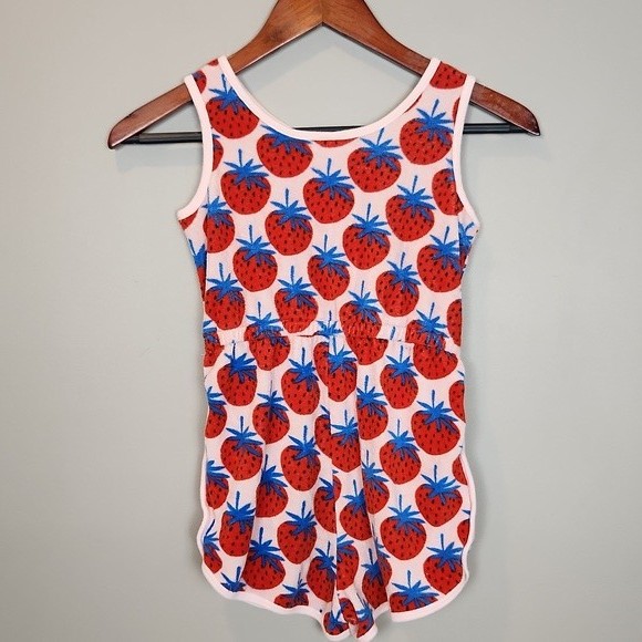как выглядит Hanna Andersson Strawberry Print Loop Terry Romper Size 8 фото
