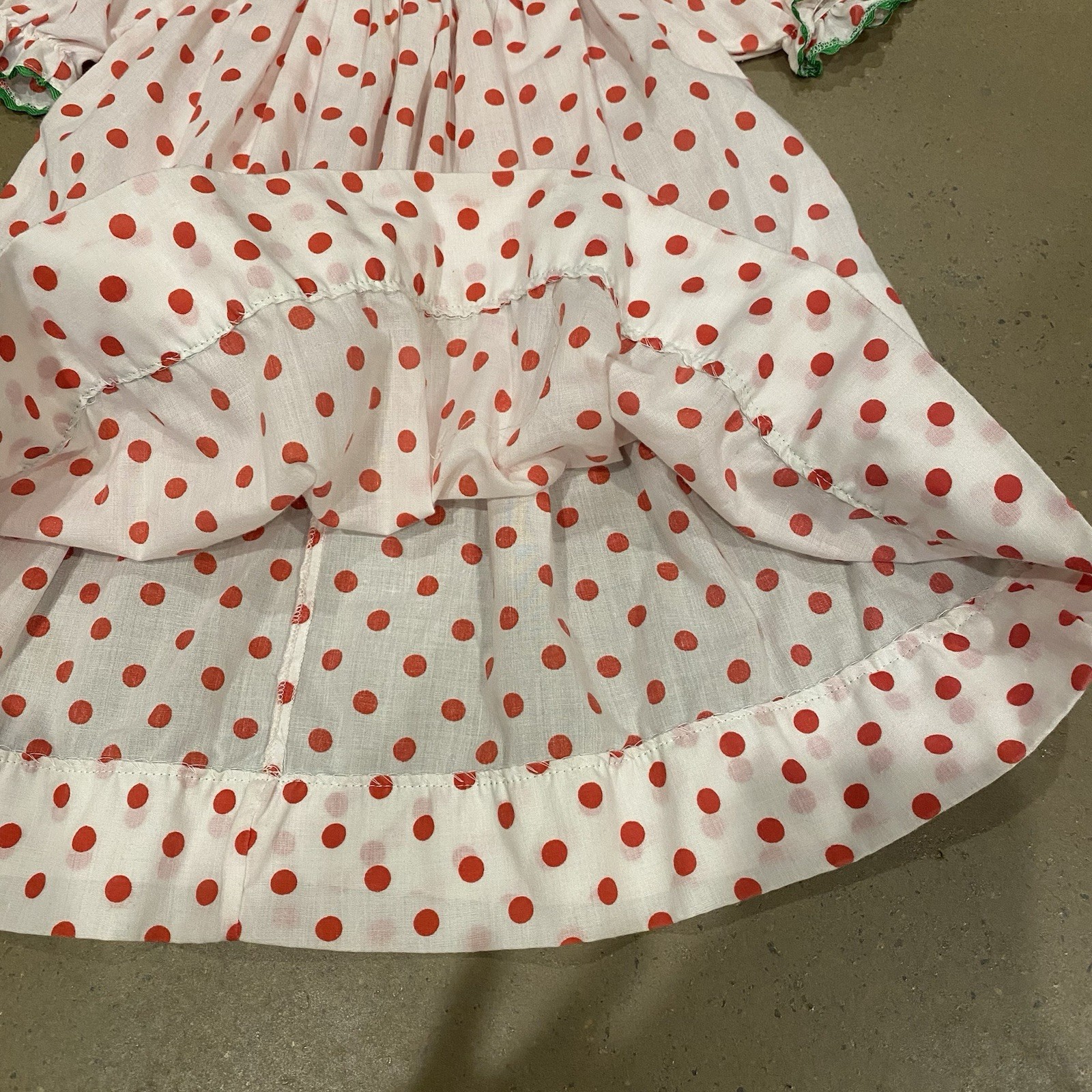 Smocked Beauty Dress 12 Months Polka Dot Christmas Bows Hand Sewn Holiday