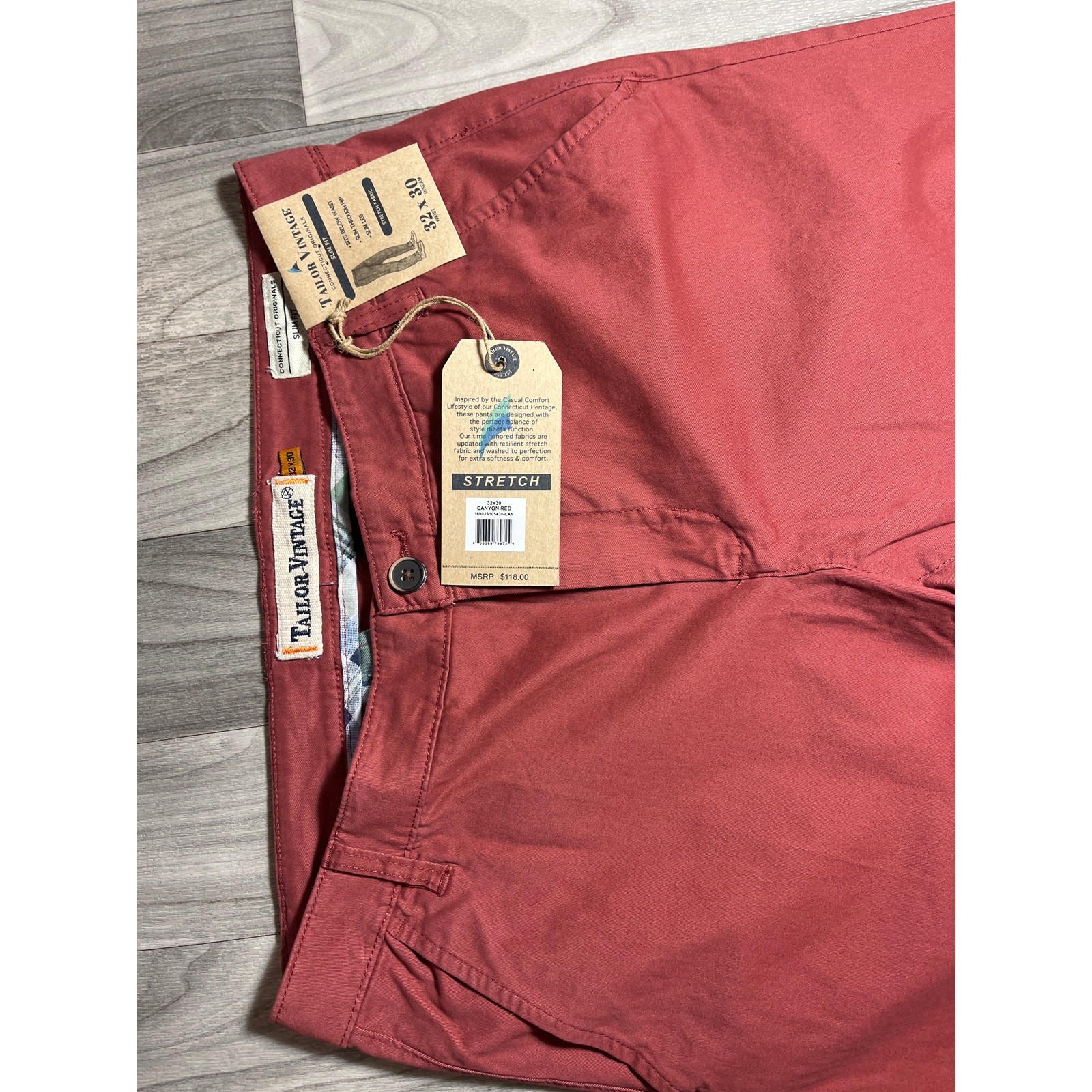 NWT Tailor Vintage Mens Slim Fit Stretch Fabric Chinos Pants. Canyon Red S 32X30