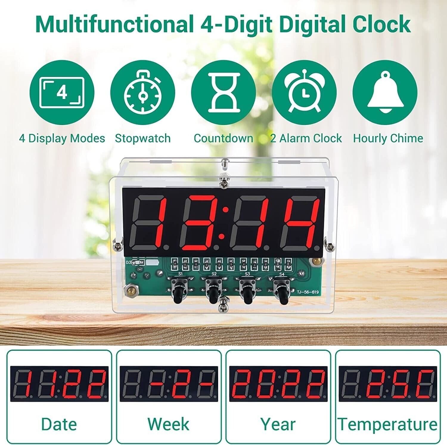как выглядит 4-Digit Rechargeable Digital Clock SMT DIY Kit Electronics Soldering Practice фото