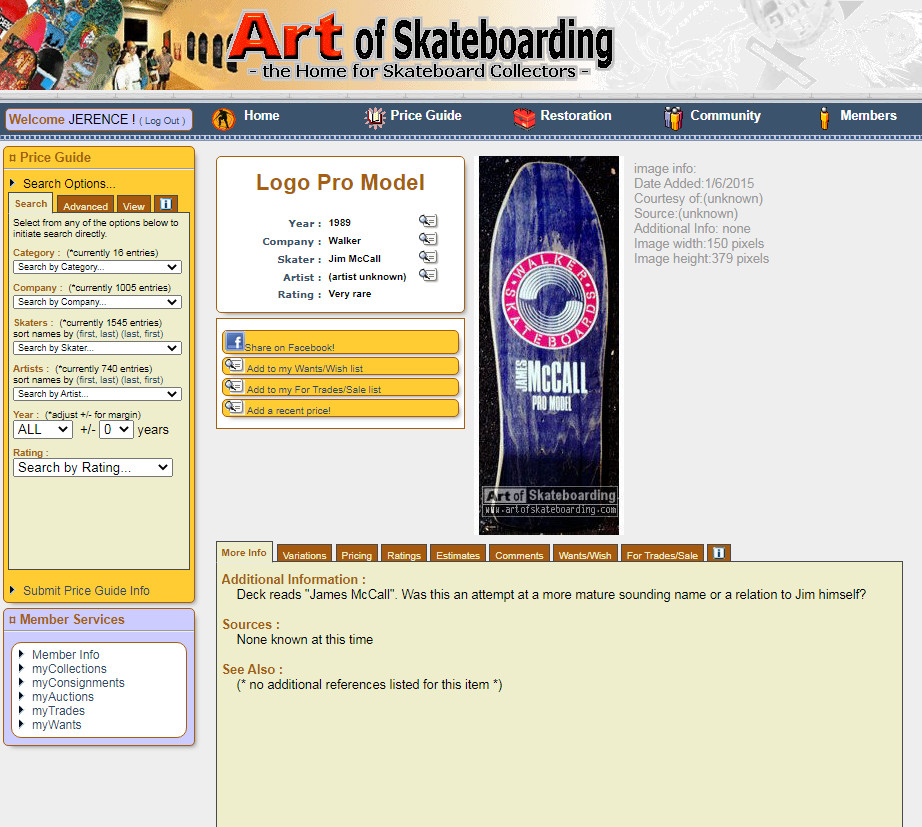 Vintage James McCall Pro Model Skateboard DECK 1989 VERY RARE 9.5 X 31