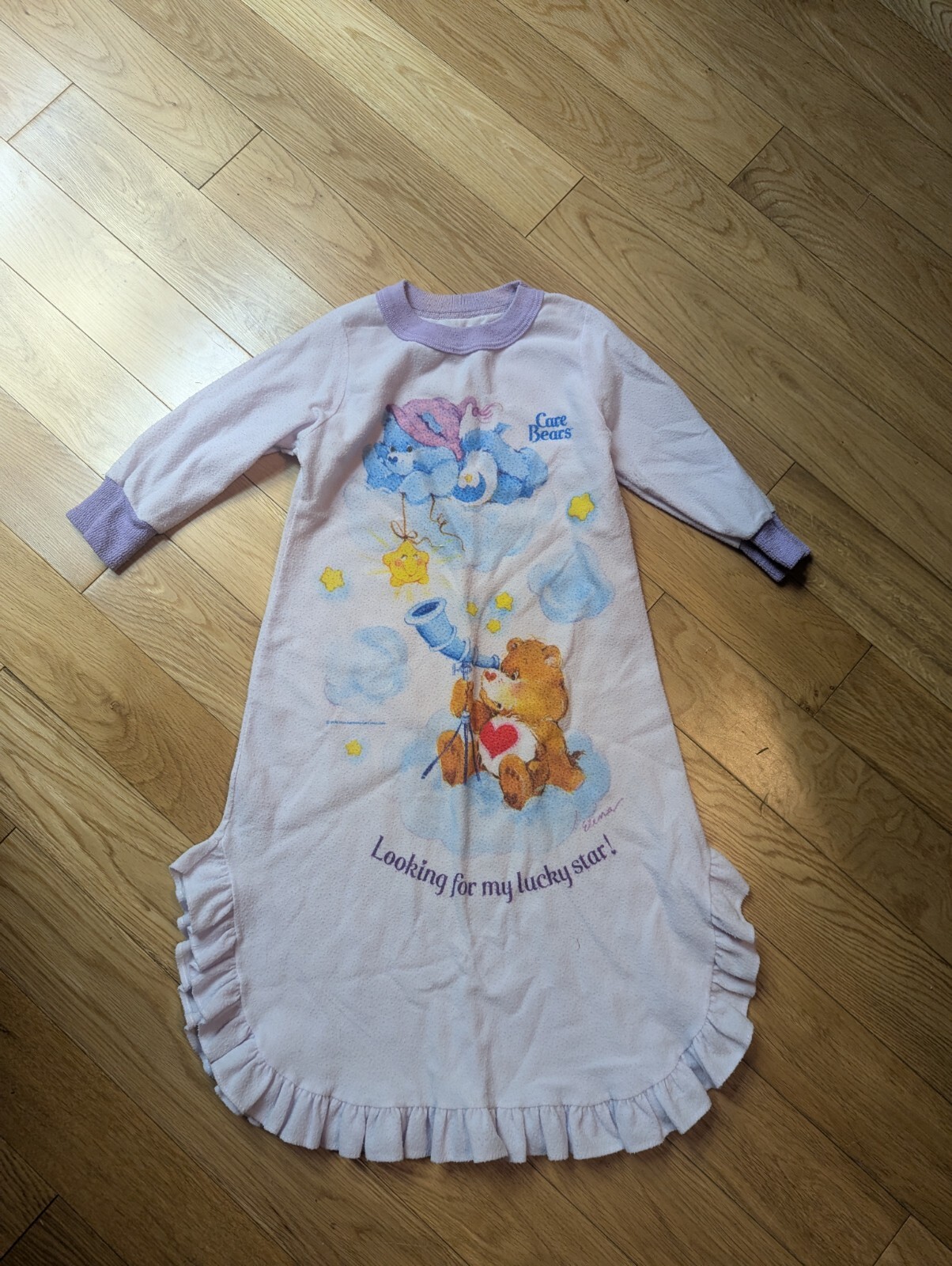 Vintage 80s Care Bear Nightgown Flannel America Greetings Lucky Star Purple 3t