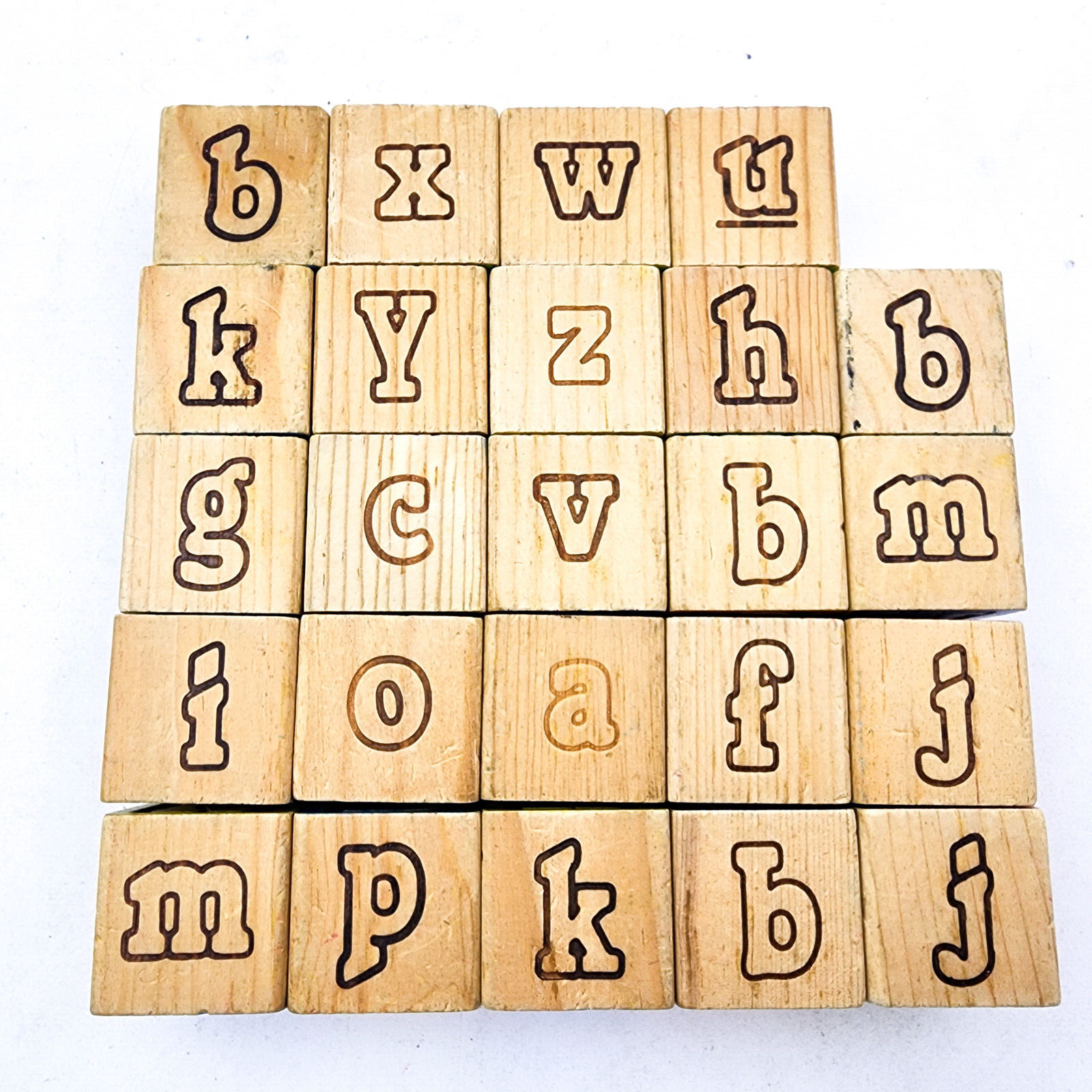 Vintage Playskool Wood Alphabet Building Blocks Lot of 24 Wooden Letter Number