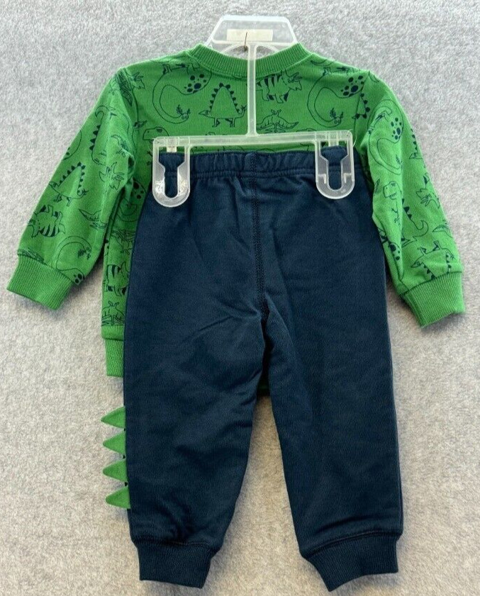 Carters Boys 2 Piece Green Dinosaur Sweatshirt Blue Jogger Playwear Set NWT