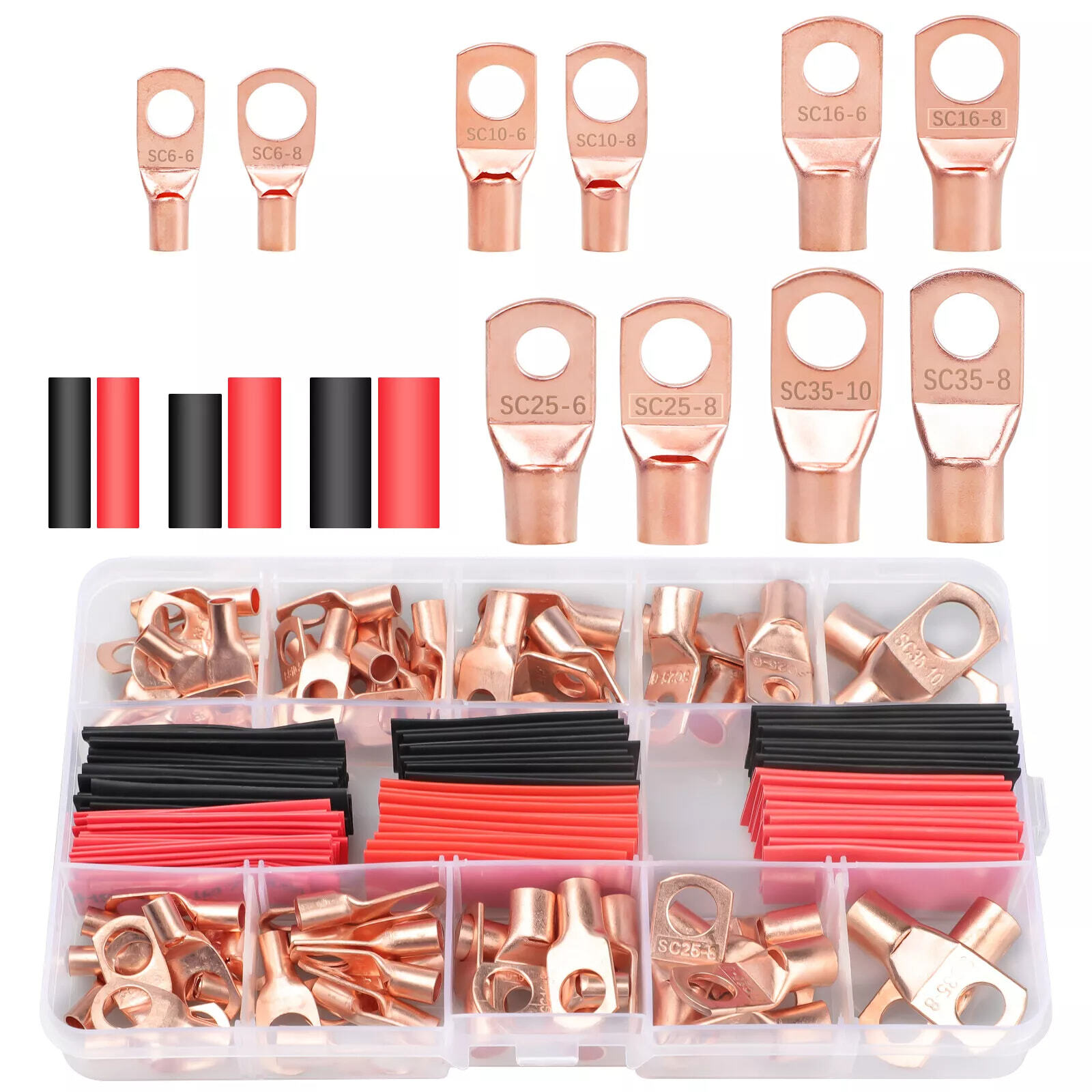 150pcs Copper Battery Cable Ends Wire Lugs Assortment Kit AWG 2 4 6 8 10 Gauge
