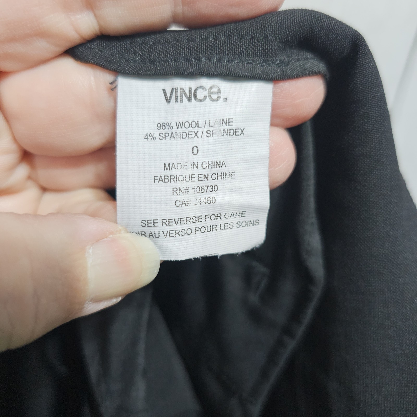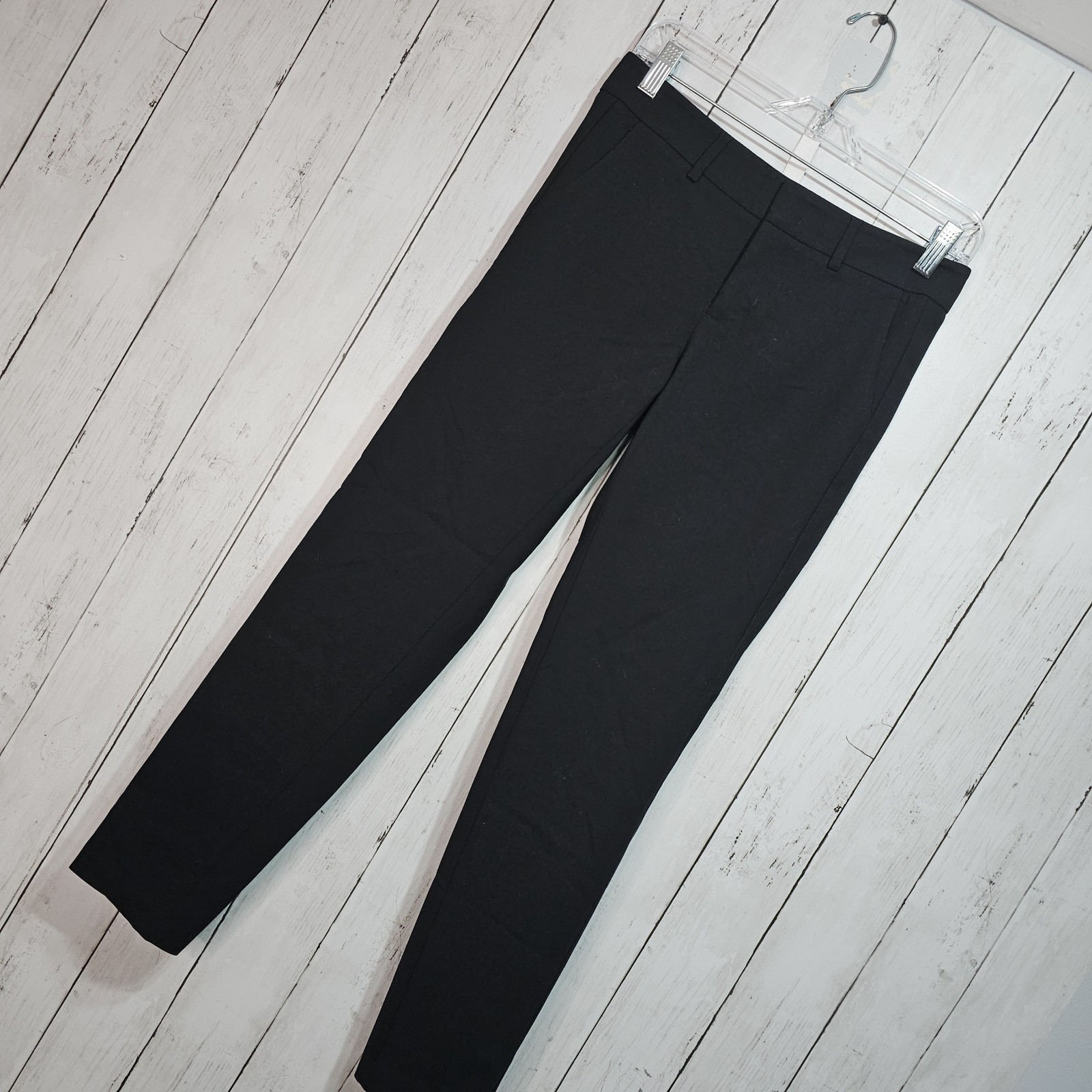 Vince Women's Black On Black Tuxedo Stripe Wool Stretch Slim Fit Pants Size 0