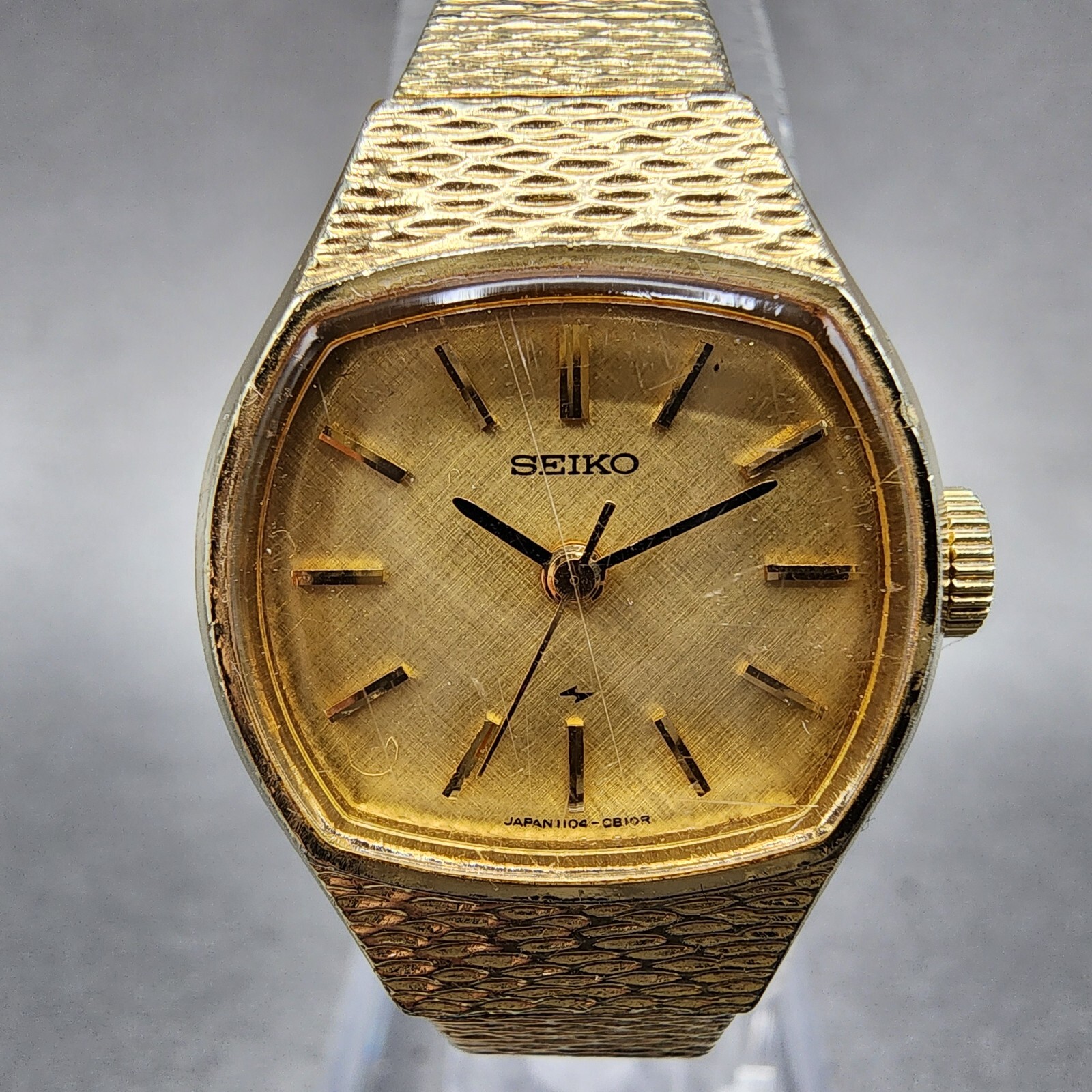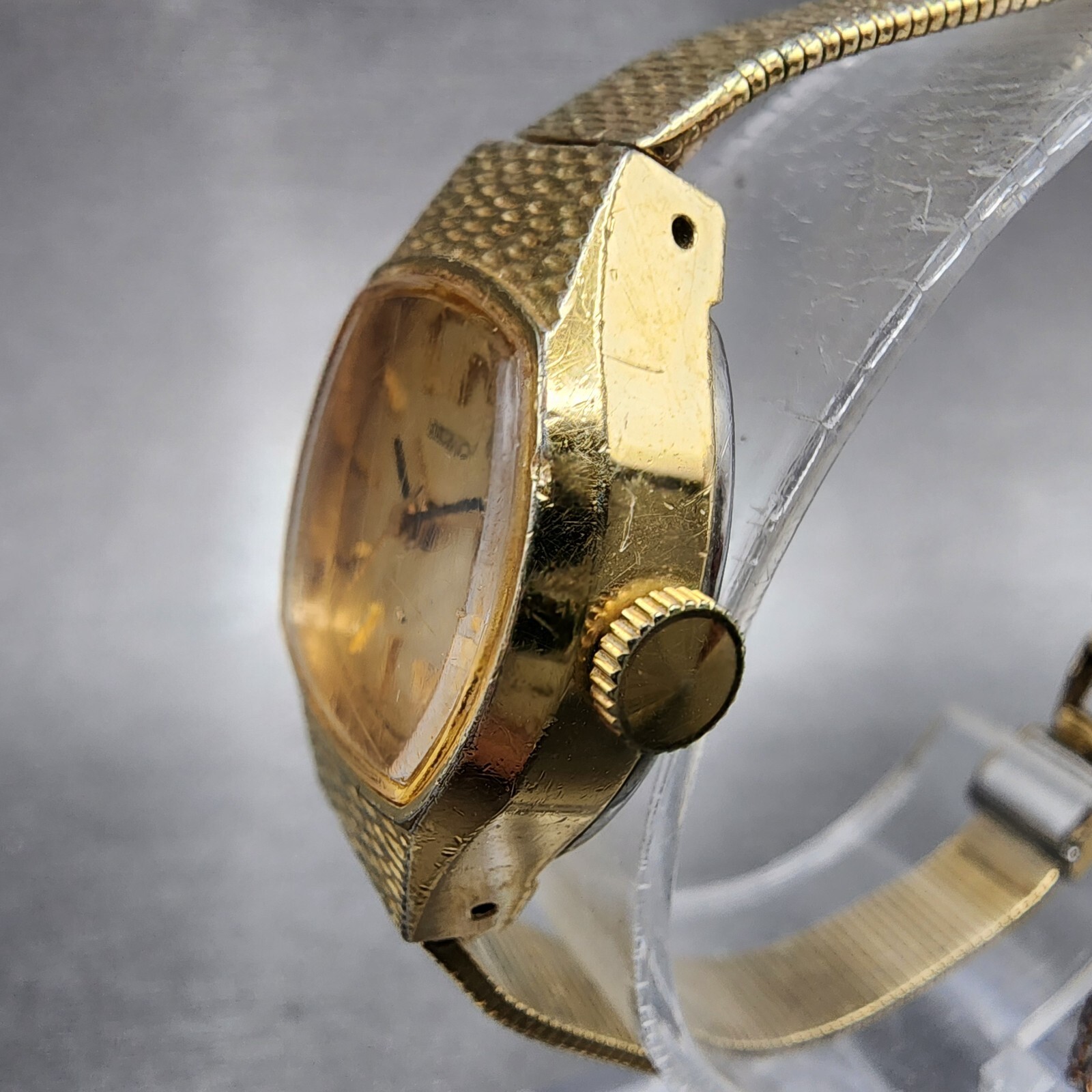 VTG Seiko Watch Women 21mm Gold Dial Gold Tone Rectangle Manual Wind Runs