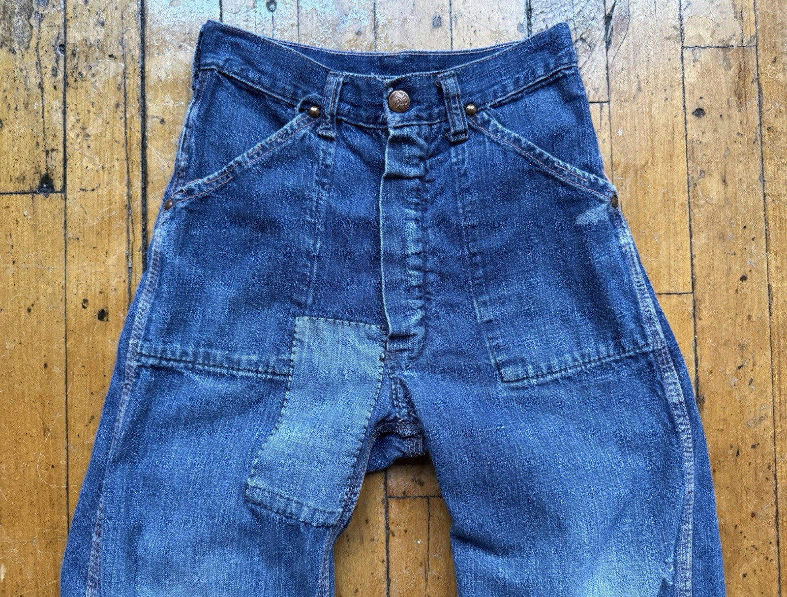 как выглядит Vintage 1950s Kids Denim Jeans 23x22 - 50s Distressed Farm Workwear Collectible фото