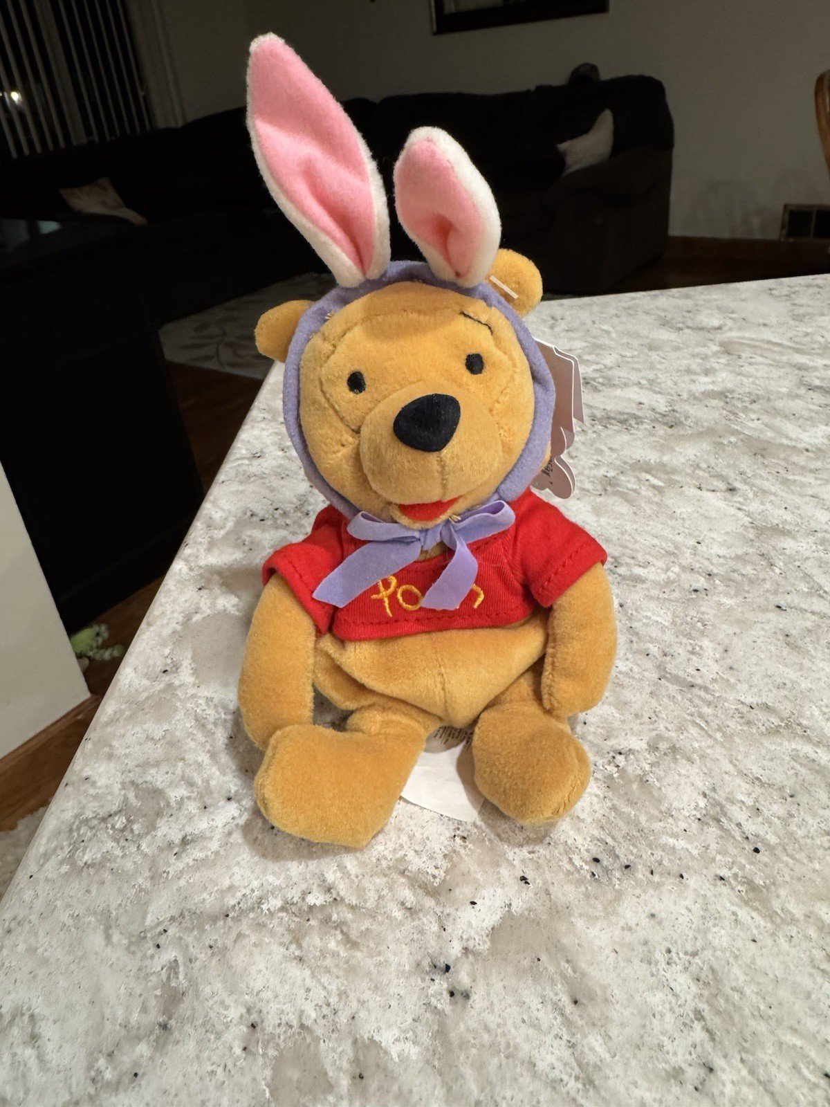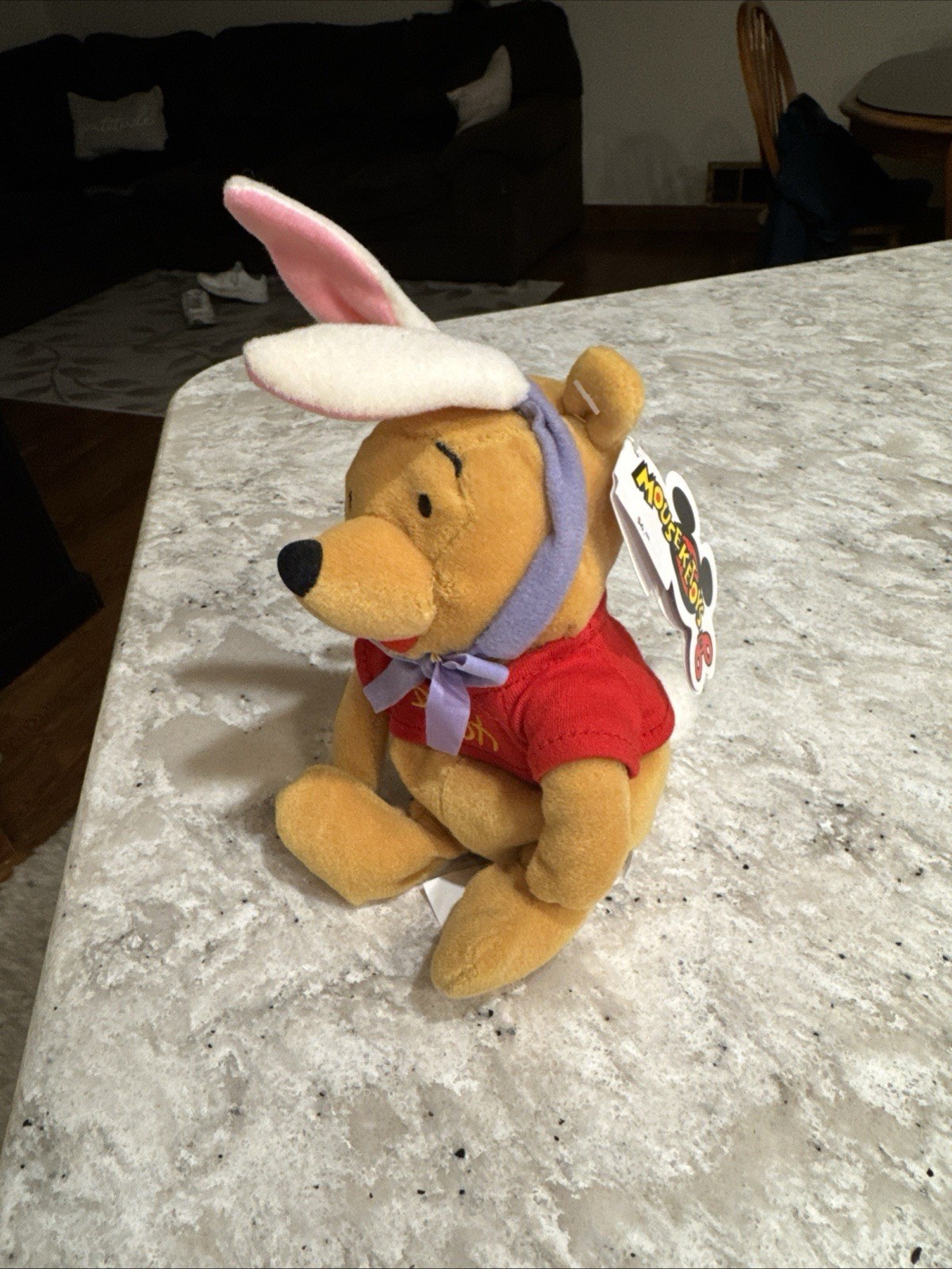 как выглядит Disney Mouseketoys Easter Bunny Pooh bear 8" Plush Mini Bean Bag W/tag B203 фото
