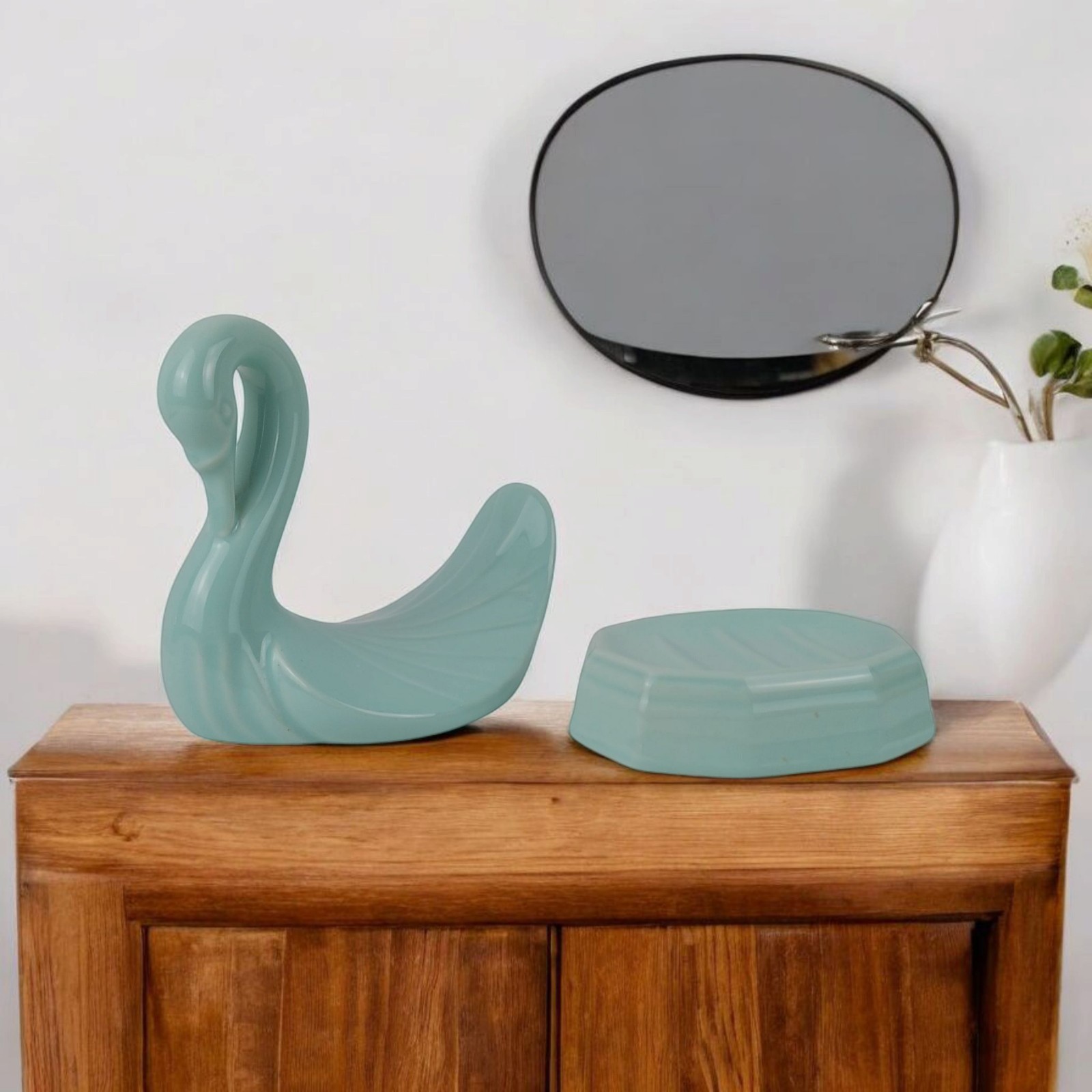 как выглядит Vtg Pfaltzgraff Ceramic Swan Towel Washcloth Holder Soap Dish Aqua Blue Green фото