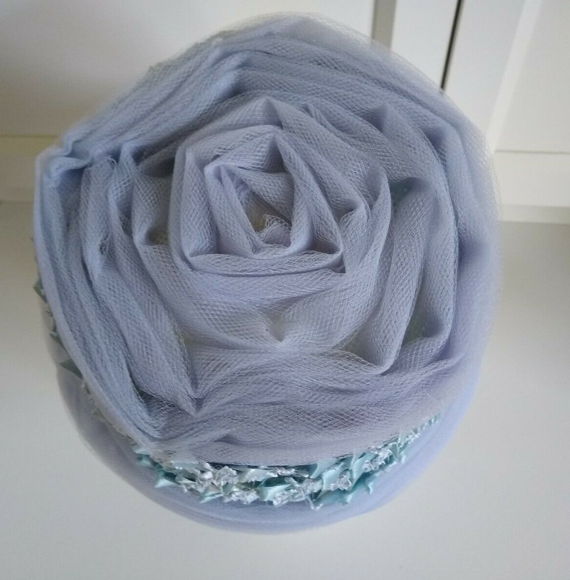 как выглядит Vintage 1960s Blue Organza Tulle Bucket Hat Woven Bow Audrey Hepburn Style фото