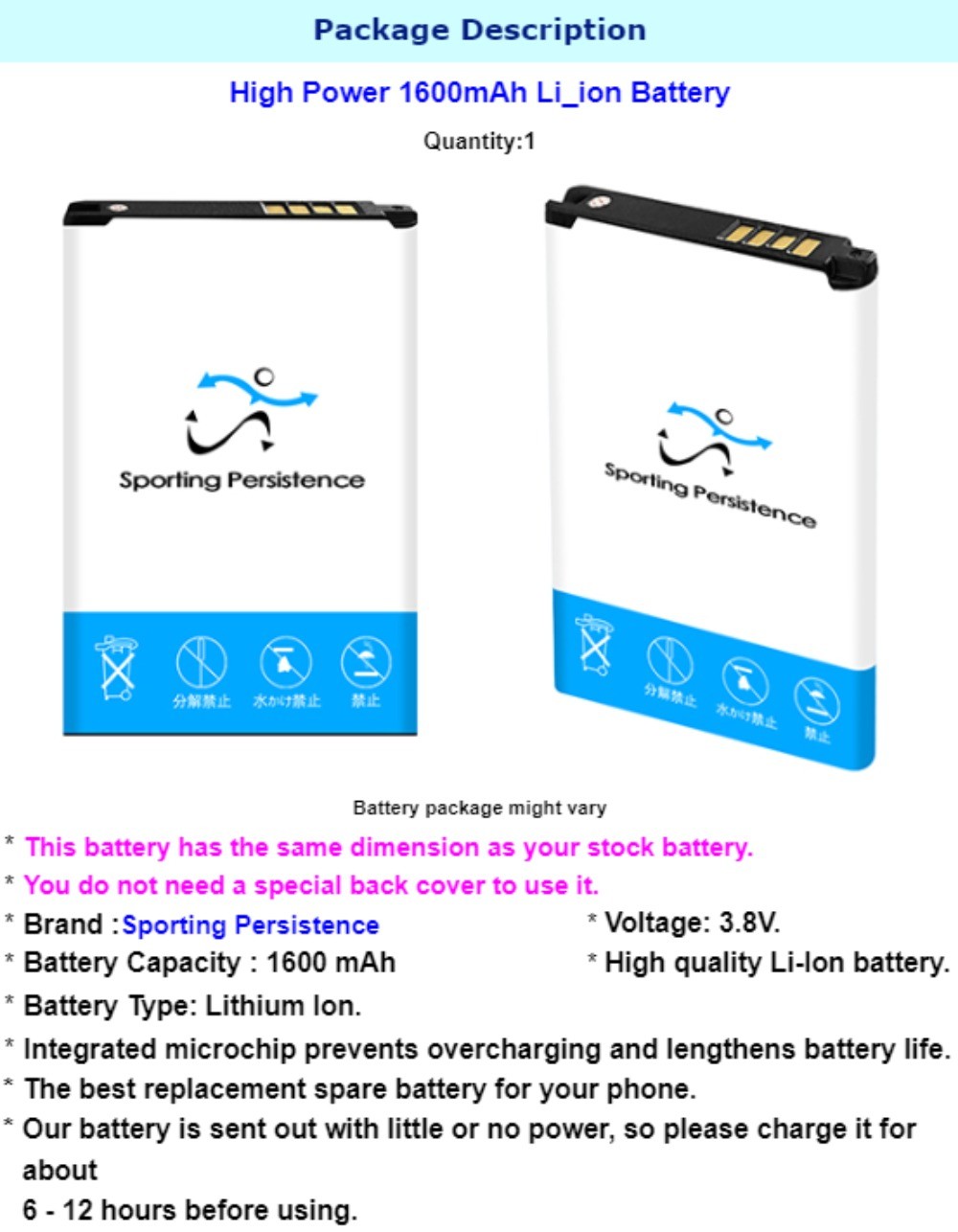 High Capacity Sporting 1600mAh Rechargeable Battery f LG Classic Flip L125DL USA