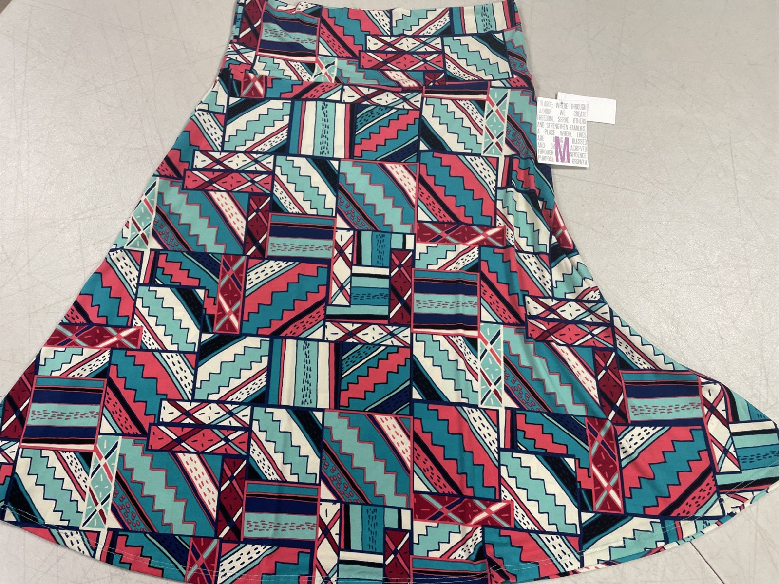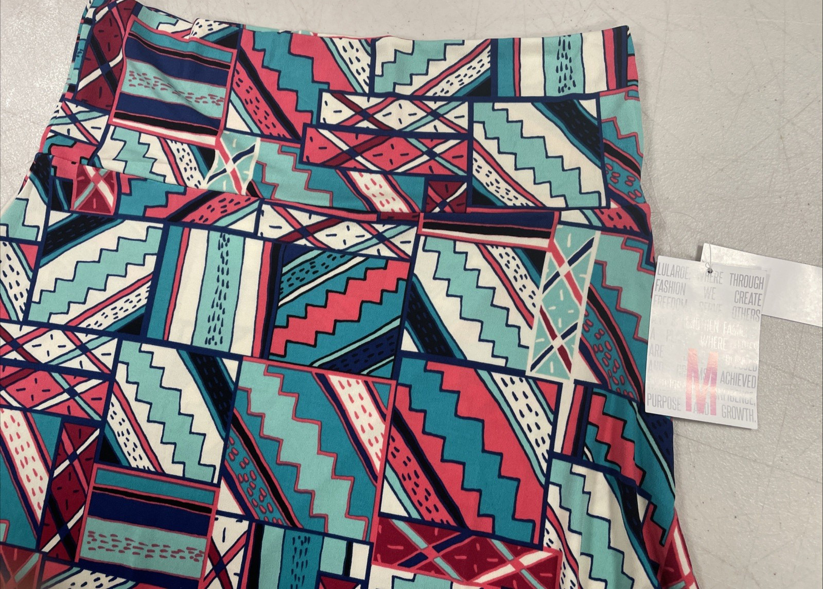 как выглядит LuLaRoe Azure Turquoise, Salmon Trible Lines Stretch Skirt Size M New W/Tags фото