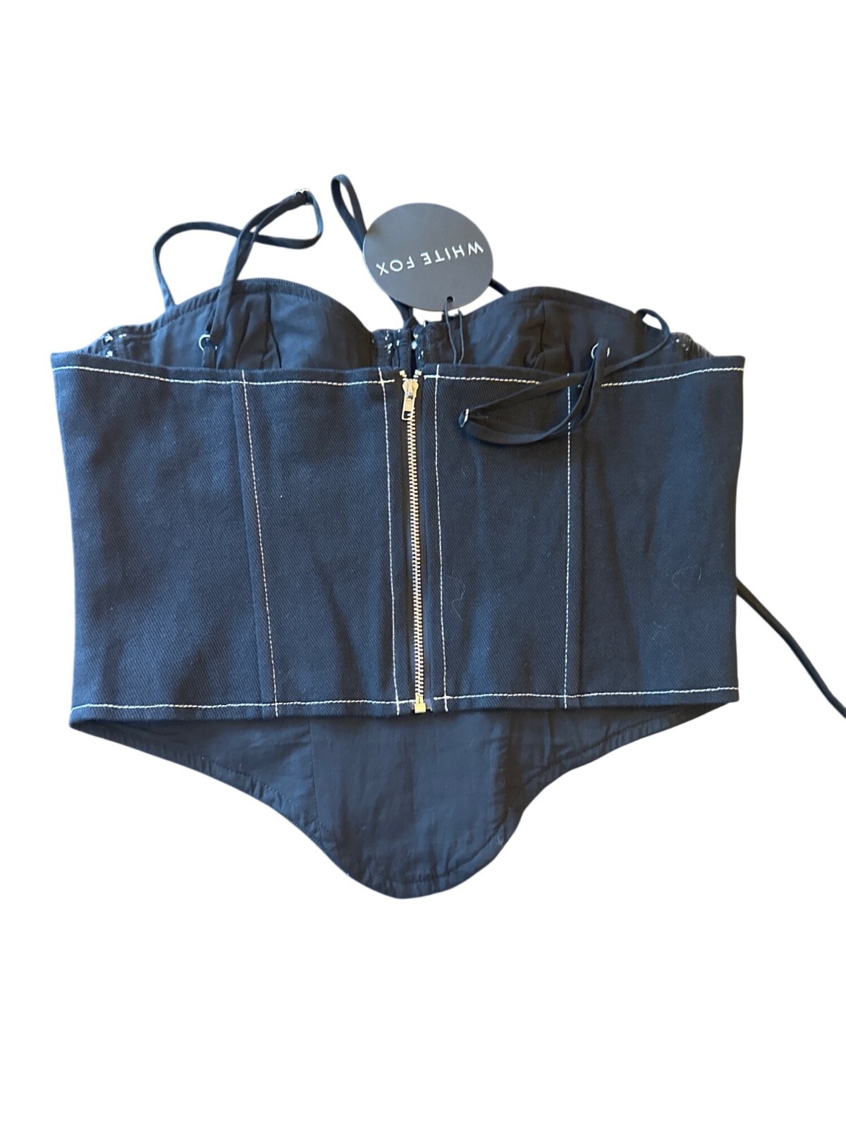 NWT White Fox Black Since I Met You Bustier Top Cotton Medium Zipper Tie