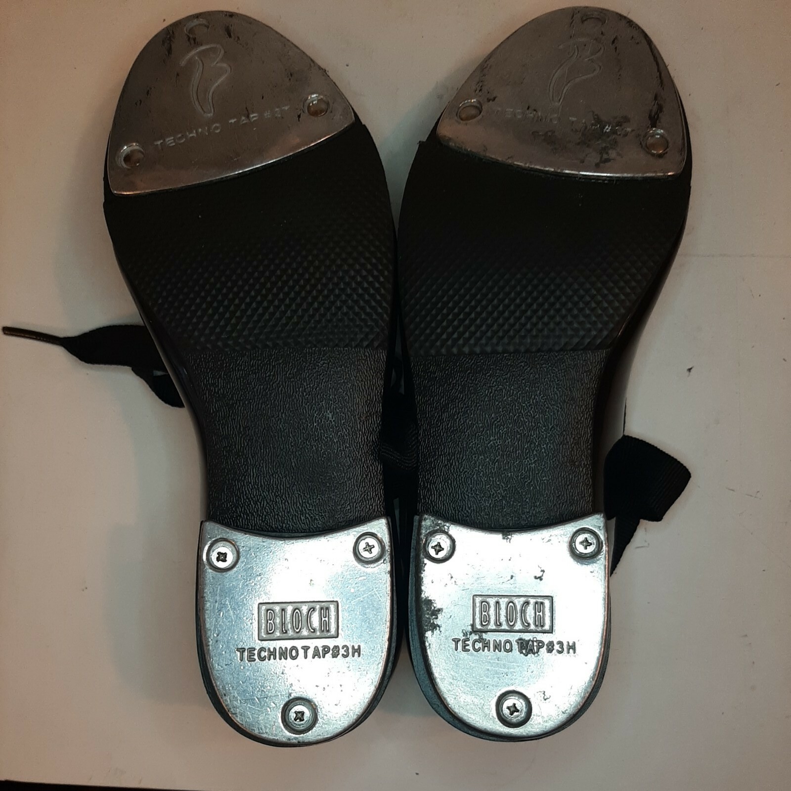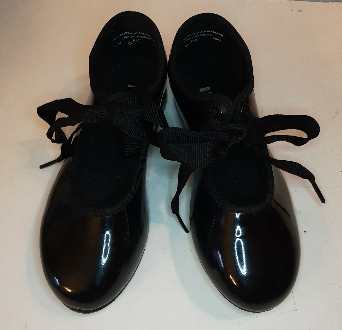 2M Girls Black Patent Bloch brand Techno Tap Shoes with Ribbon Tie