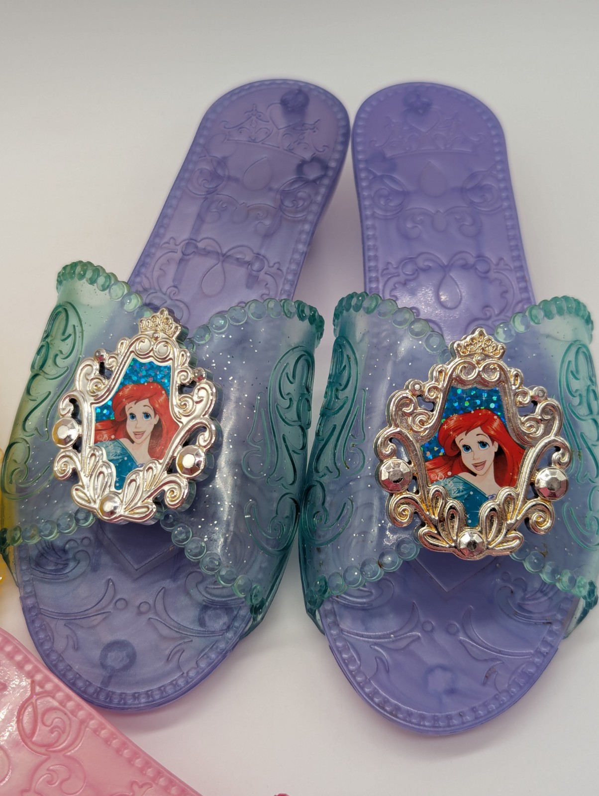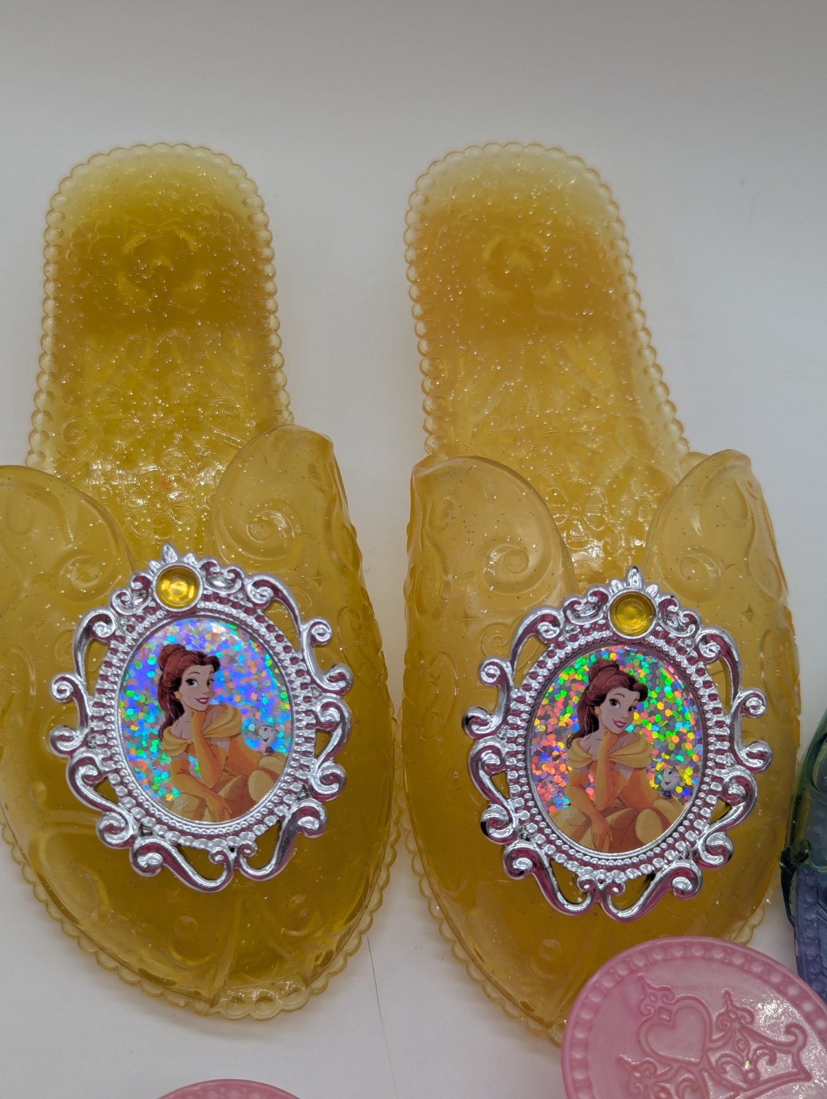 как выглядит Jakks 3 Pairs Of Disney Princess Dress Up Shoes Costume Pink, Purple Yellow фото