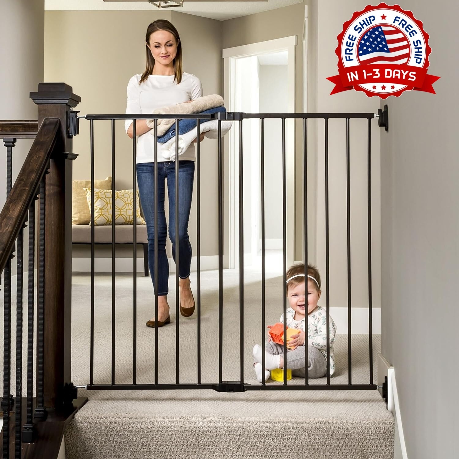 Puerta para beb s 2 en 1 extra alta para escaleras y pasillos Negra NUEVO US