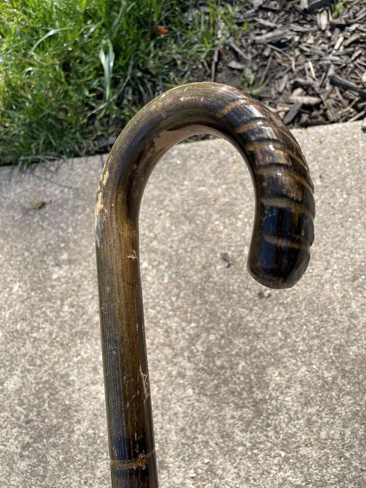 Vintage Bent wood cane Walking Stick Carved Faux Bamboo