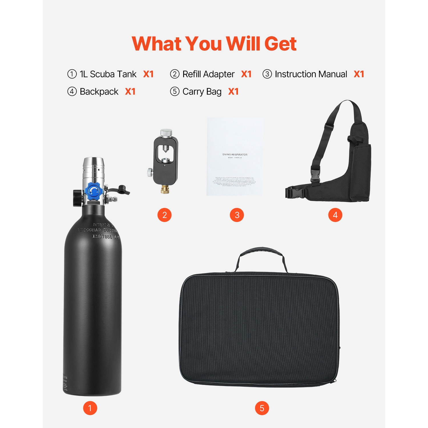 Mini Scuba Diving Tank Kit 1 L Oxygen Tank Depth Refillable Snorkel Air Tank Kit