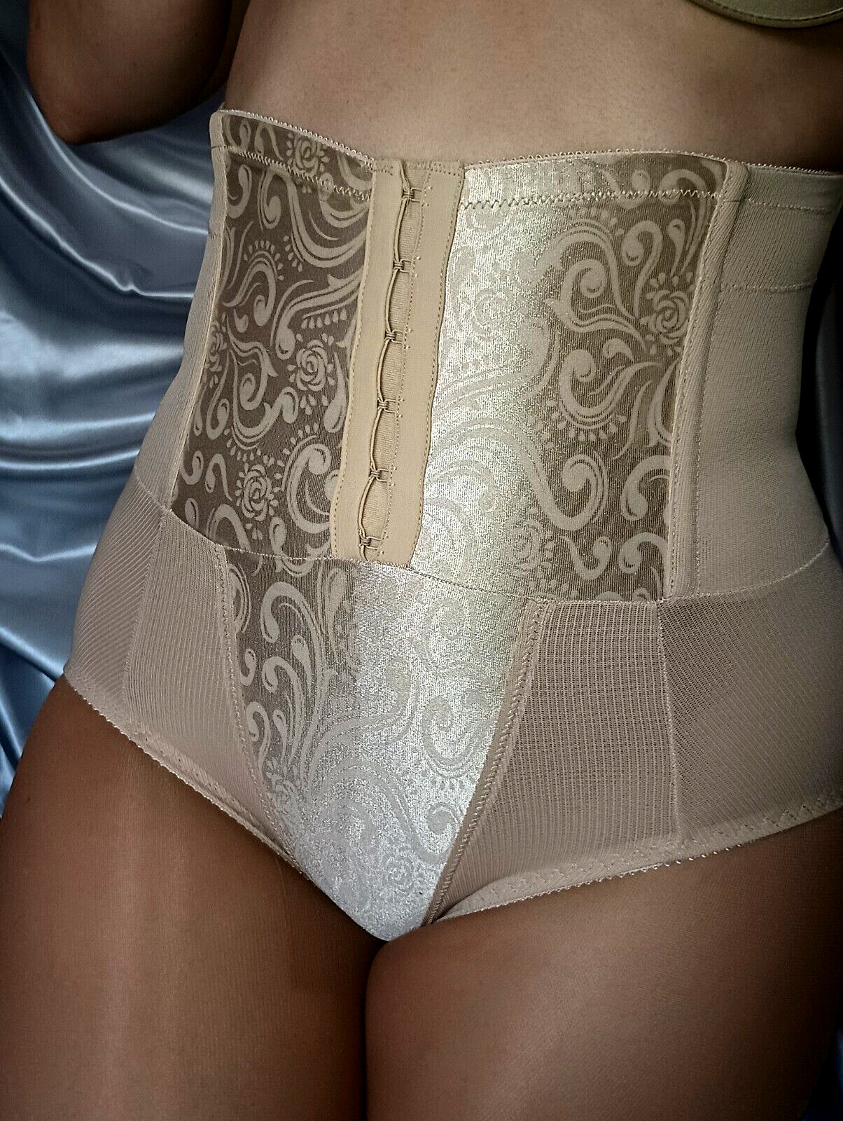 vtg Metal Bone in Boning High waist panties girdle NIP TUCK Tuk: VTg satin shiny Scroll Eye Hook Pantys girdle Metal Boning XS S P