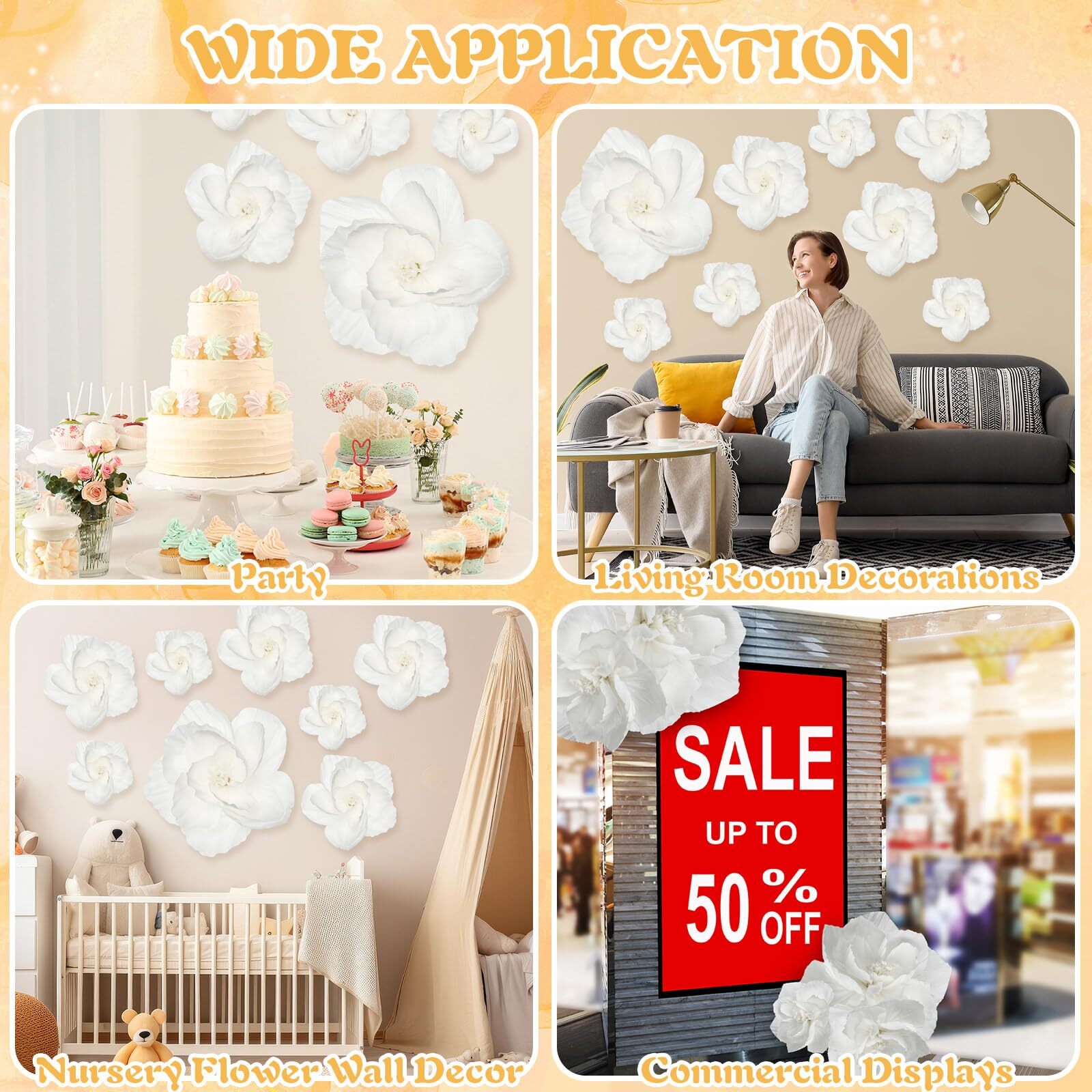 Giant Paper Flowers White 12 Pcs Wedding Backdrop Table Centerpieces Party