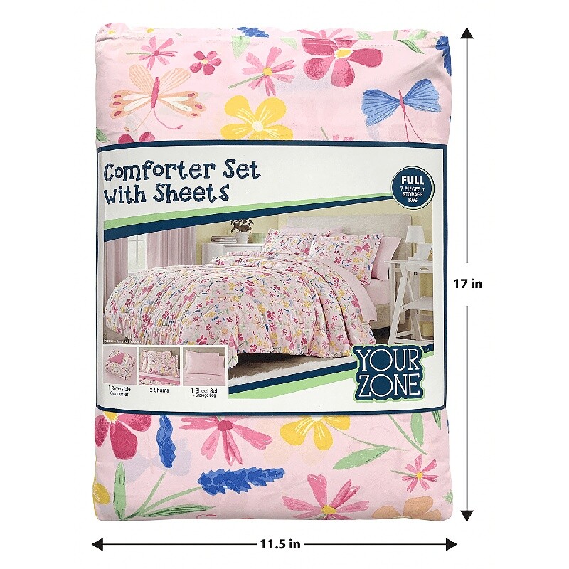 Set Includes: 1 comforter, 1 sham, 1 fitted sheet, 1 flat sheet, 1 pillowcase